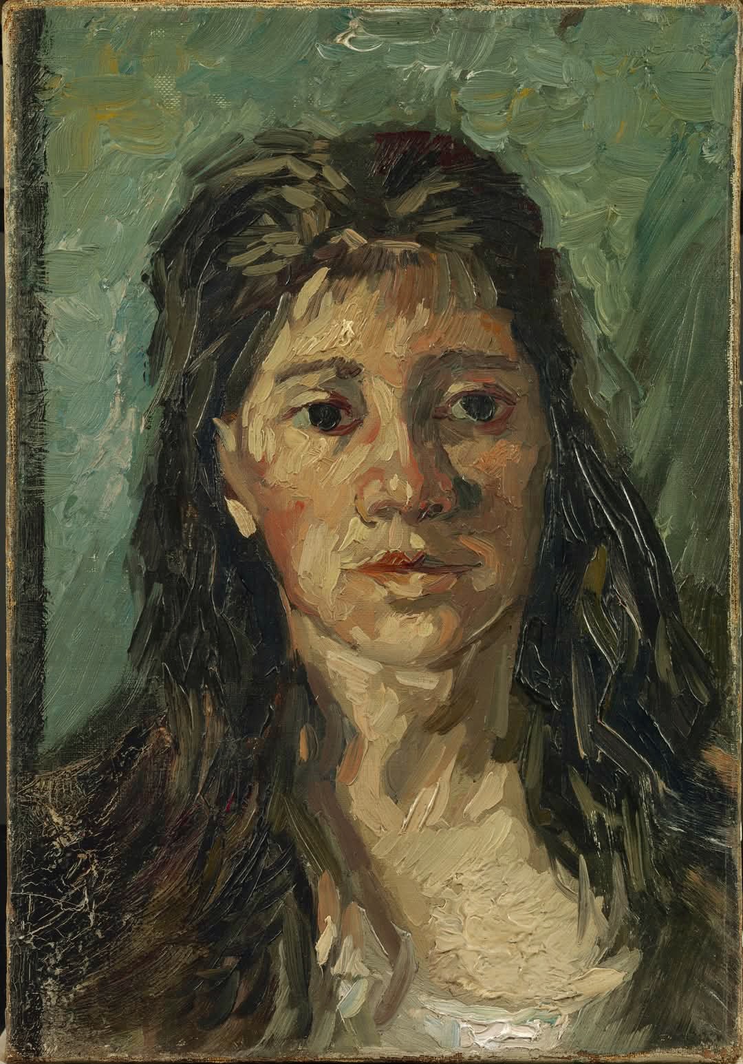 느슨하게 늘어뜨린 머리 때문에 그가 매춘부임을 알 수 있는 이 여성은 돈은 거의 없었지만 그림을 그리고 싶은 열망이 컸던 반 고흐에게는 무엇보다도 저렴한 모델이었다.