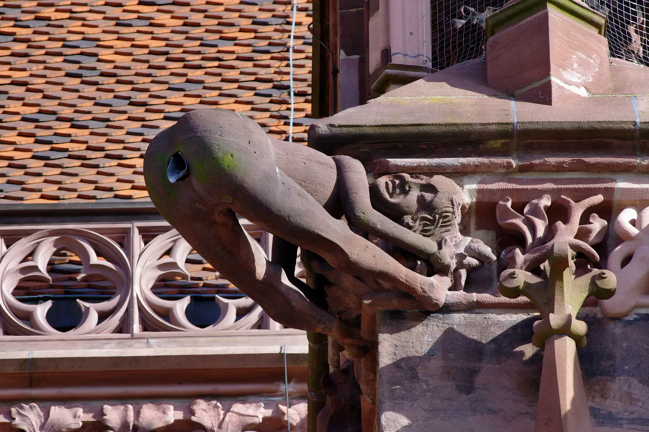 번화한 프라이부르크 대성당Freiburg Minster 거리 위로 높이 솟은 악명 높은 이 가고일gargoyle은 빗물을 끌어내는 이상의 일을 하는 기발한 인물상이다.
