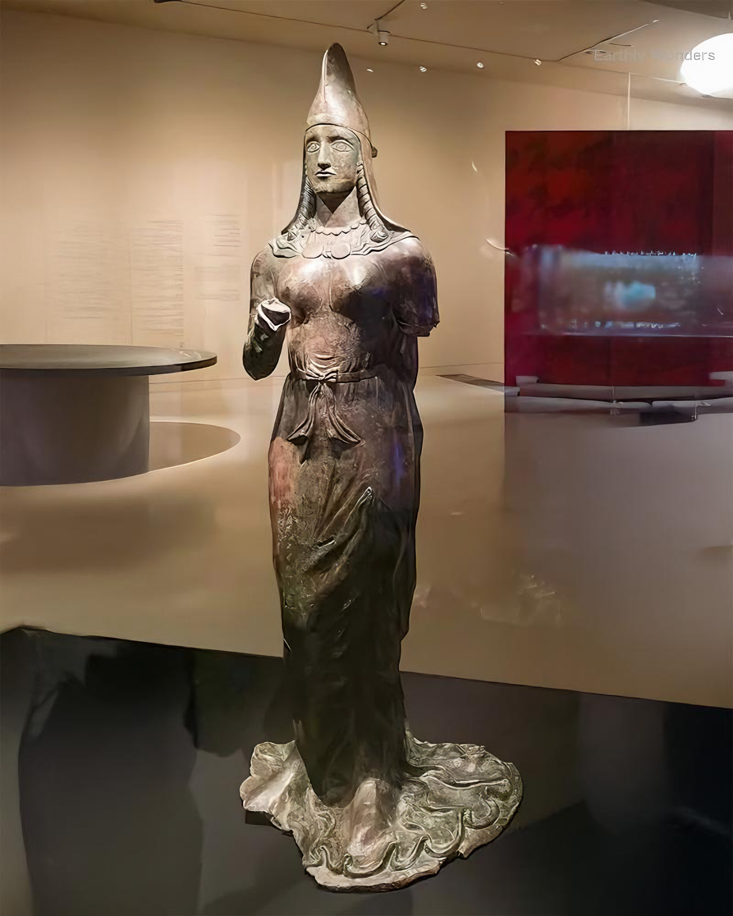 This extraordinary bronze statue, crafted around 300 AD, depicts the ancient goddess Anahita and is currently housed in the Kuwait National Museum after its discovery in Iran.