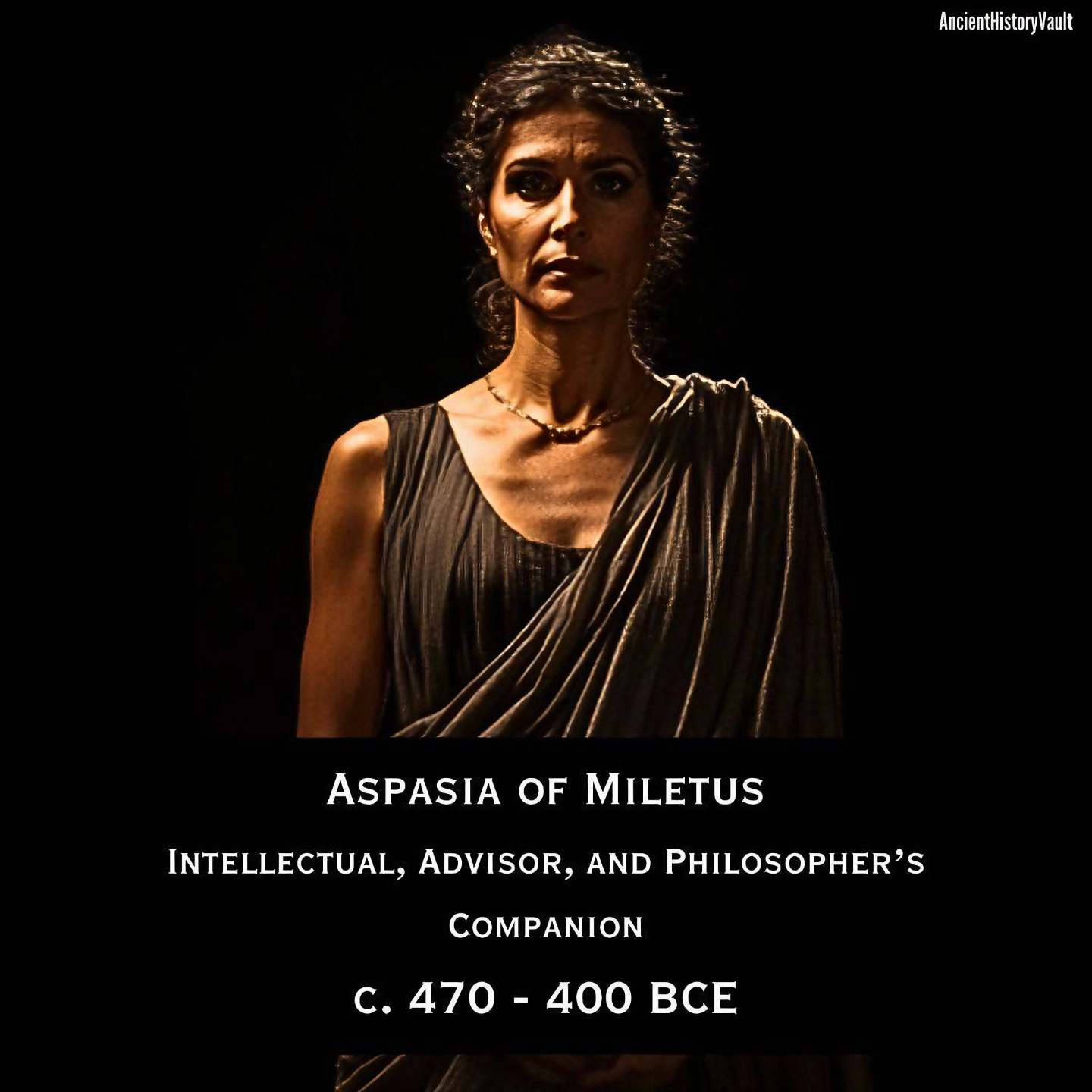 소아시아 밀레토스 출신인 아스파시아는 아테네로 이주하여 뛰어난 지성과 수사학으로 명성을 얻었다. 그녀는 철학과 정치계에서 교사이자 조언자로서 소크라테스를 비롯한 당대 주요 인사들의 관심을 끌었을 것으로 추정된다.