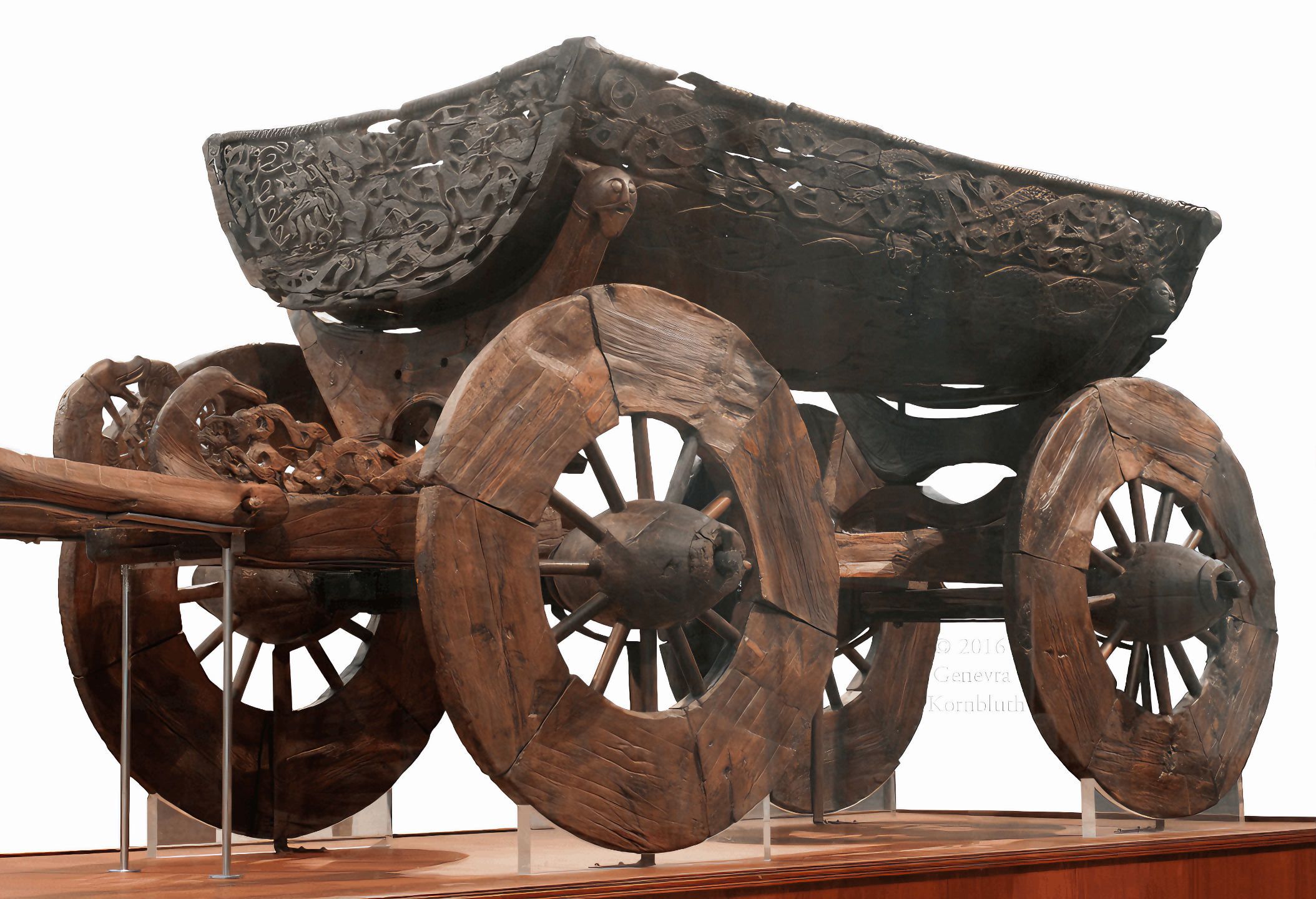 이 마차는 지금까지 발견된 바이킹 시대 목공예품 중 가장 잘 보존된 사례 중 하나다.