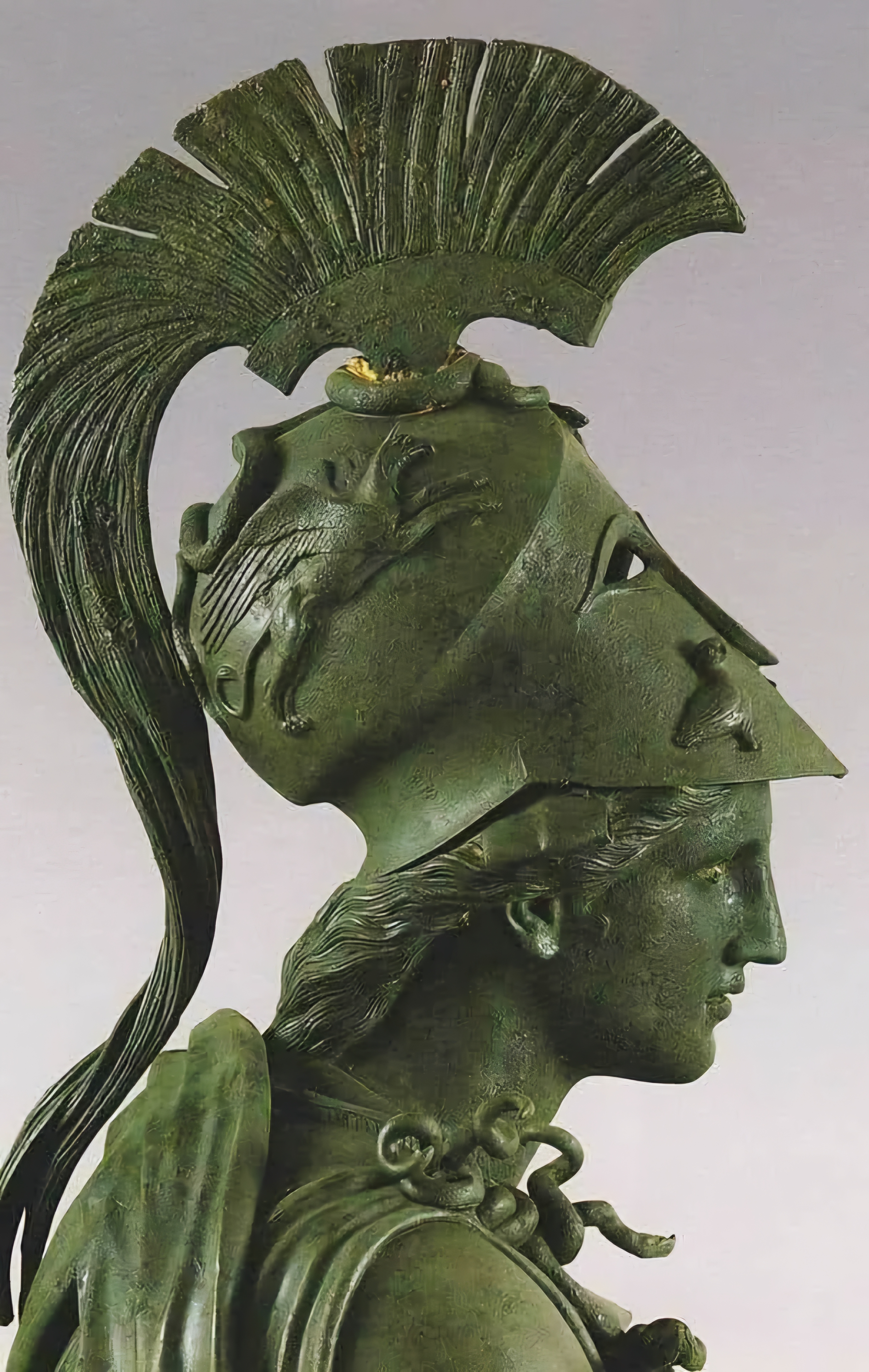 높이 거의 8피트에 달하는 이 순동제 조각을 그 발견 장소 이름을 따서 "피레우스 아테나Piraeus Athena"라 부른다.