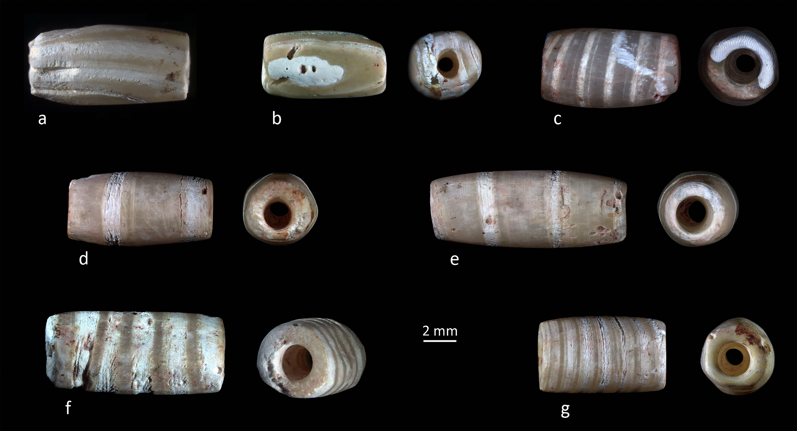요르단 남부 농촌 마을인 바자Ba’ja에서 발견된 기원전 7400~6800년 무렵 한 아이 무덤에서 나온 목걸이라 한다.