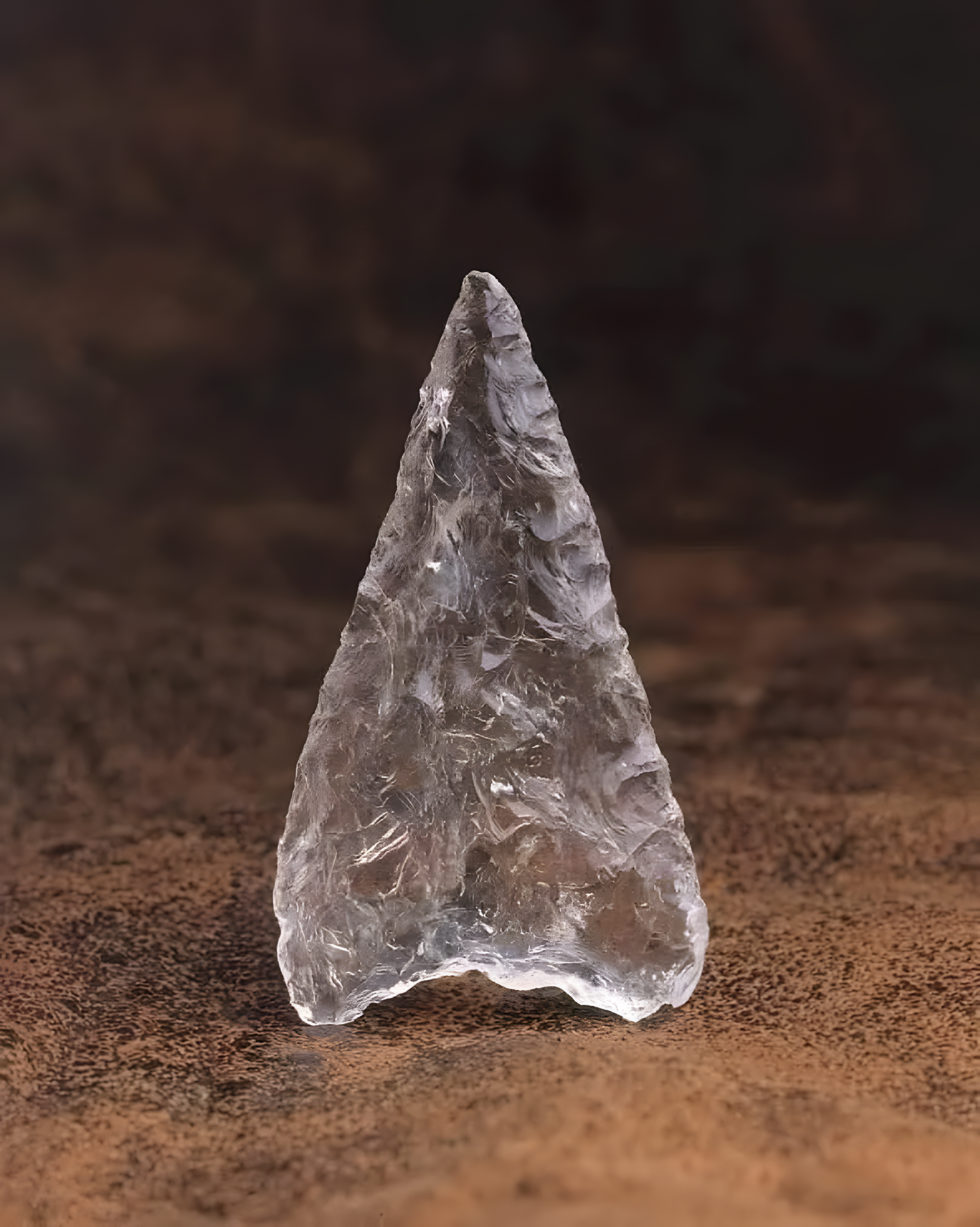 1999년 스위스 뇌샤텔Neuchâtel에서 케이블카 건설 중에 발굴된 이 투명 석영 화살촉 quartz arrowhead은 기원전 3,500년의 느닷없는 선물이며 놀라운 장인 정신을 보여준다.