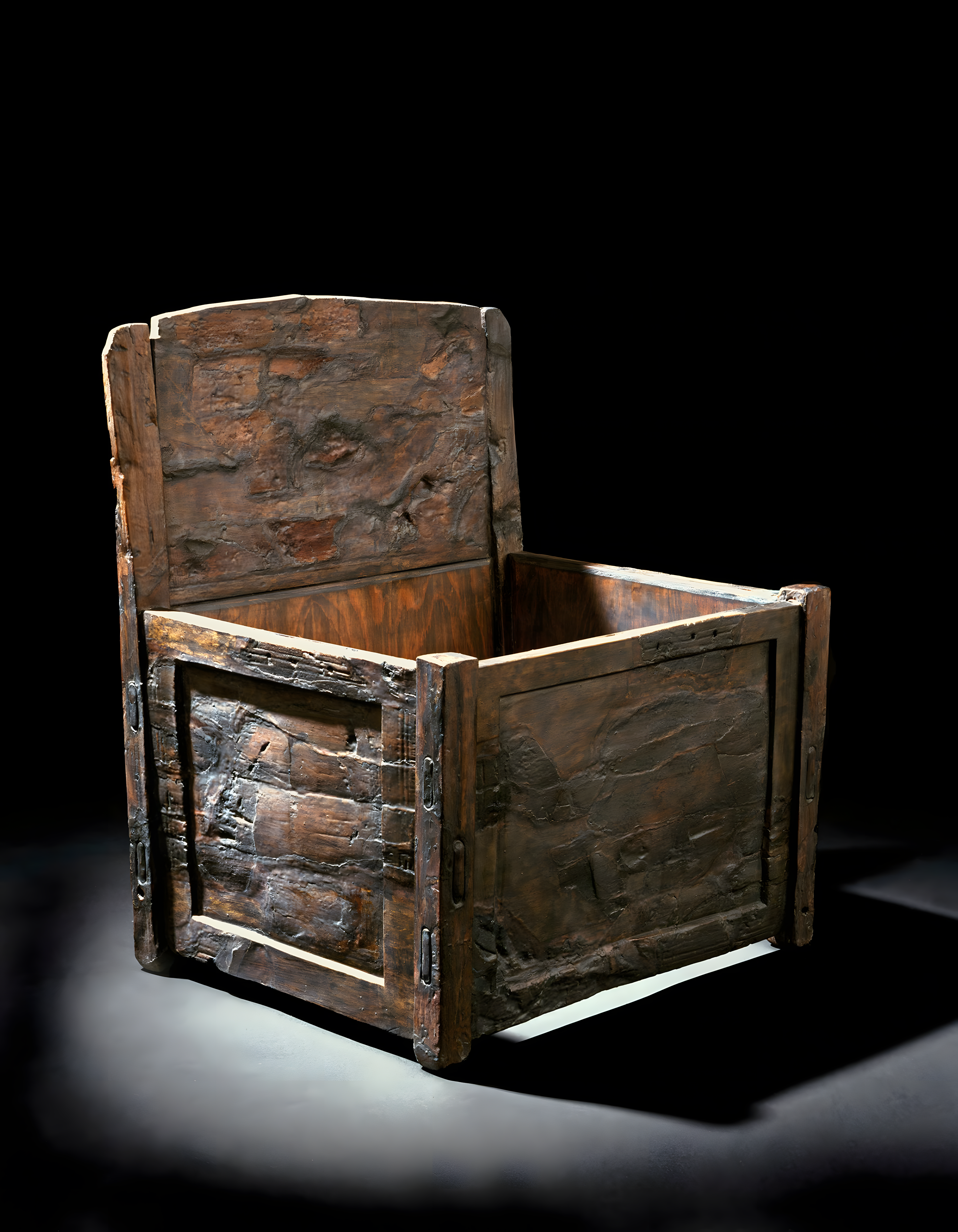 이 의자는 봉분에서 발견된 다른 많은 나무 유물들과 마찬가지로 명반alum과 함께 보존되었다.