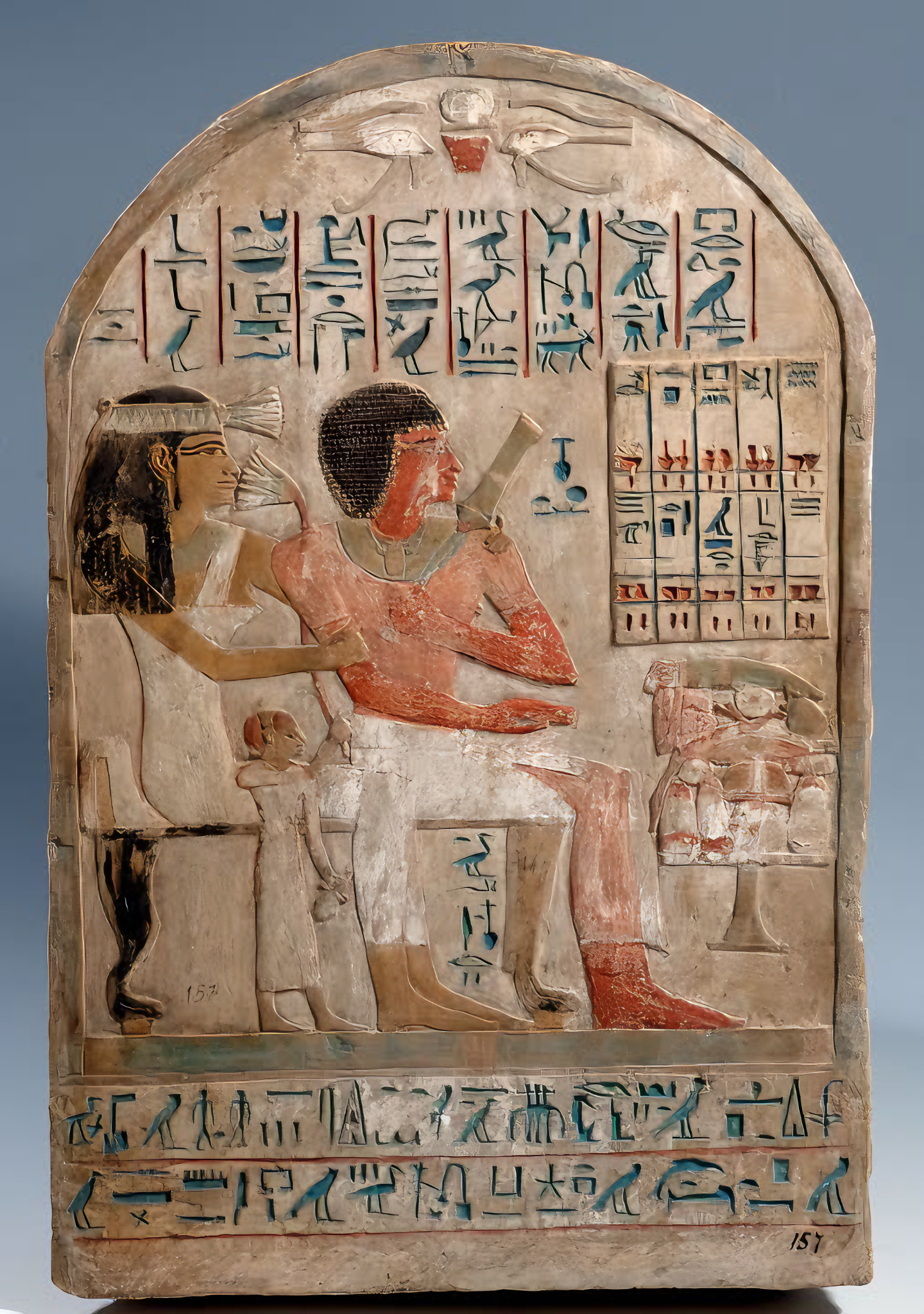 A painted limestone stela of Djehutynefer (also called Seshu) who was a scribe of accounts of cattle and fowl in the Temple of Amun at Karnak. He lived sometime during the 18th Dynasty (circa 1500-1425 BCE).