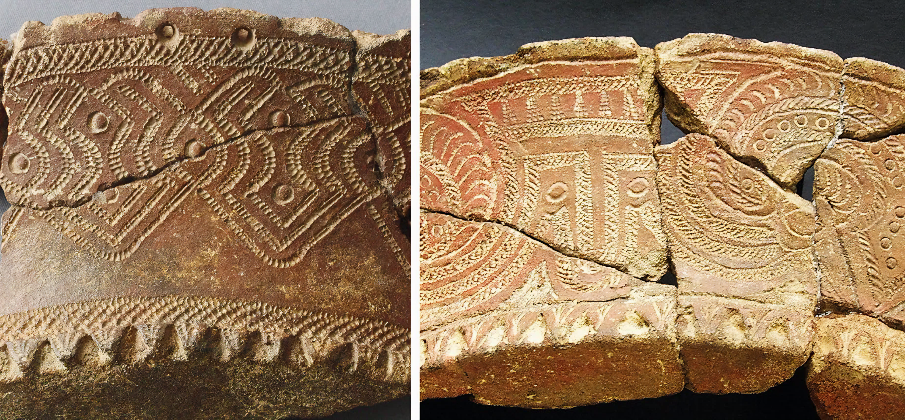 붉은색 슬립red slips, 작은 펀치 자국tiny punch marks, 치상 도장dentate stamps, 원형 도장, 그리고 원 안에 십자가가 있는 모티프cross-in-circle motif와 같은 매우 독특한 요소들을 지닌다.