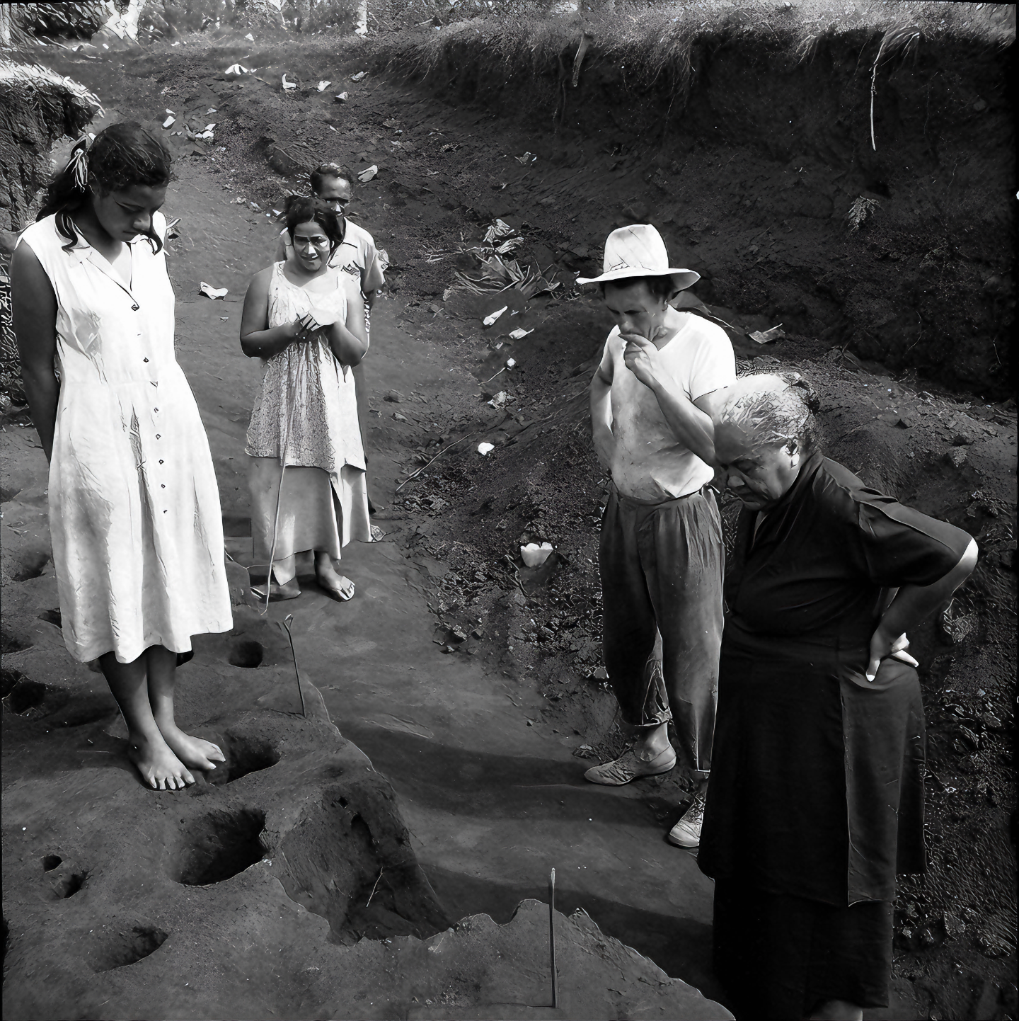 이 발굴은 1952년 미국 고고학자 에드워드 W. 기포드(Edward W. Gifford)와 리처드 셔틀러 주니어(Richard Shutler Jr.)가 '유적 13'에서 수행했다.