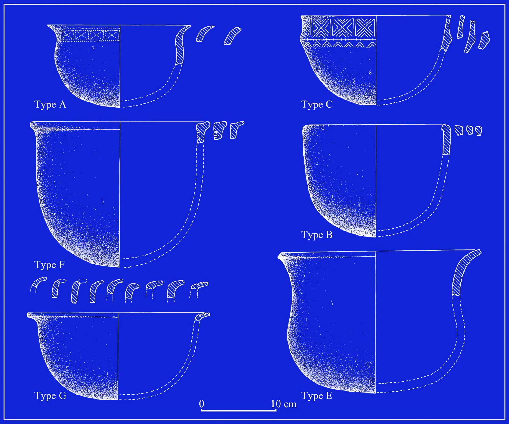 그러나 일반적으로 도기는 저온 소성 토기low-fired earthenware로 구성되었으며, 조개껍질이나 모래로 담금질하고 톱니 모양의("치아dentate") 도장 toothed stamp으로 장식했다.