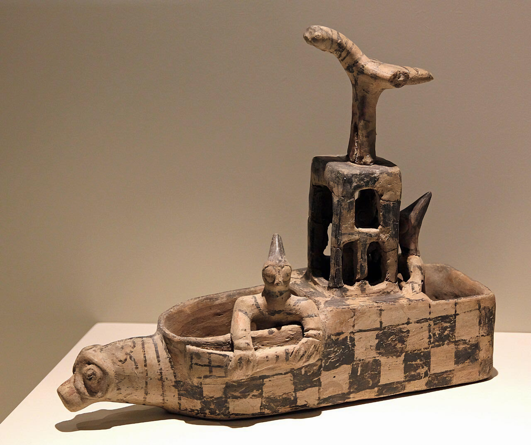 A terracotta ritual vessel in the shape of a boat, dating back to the 19th century BC, from Kültepe, an ancient city in Anatolia. It is currently housed in the Museum of Anatolian Civilizations in Ankara, Turkey.