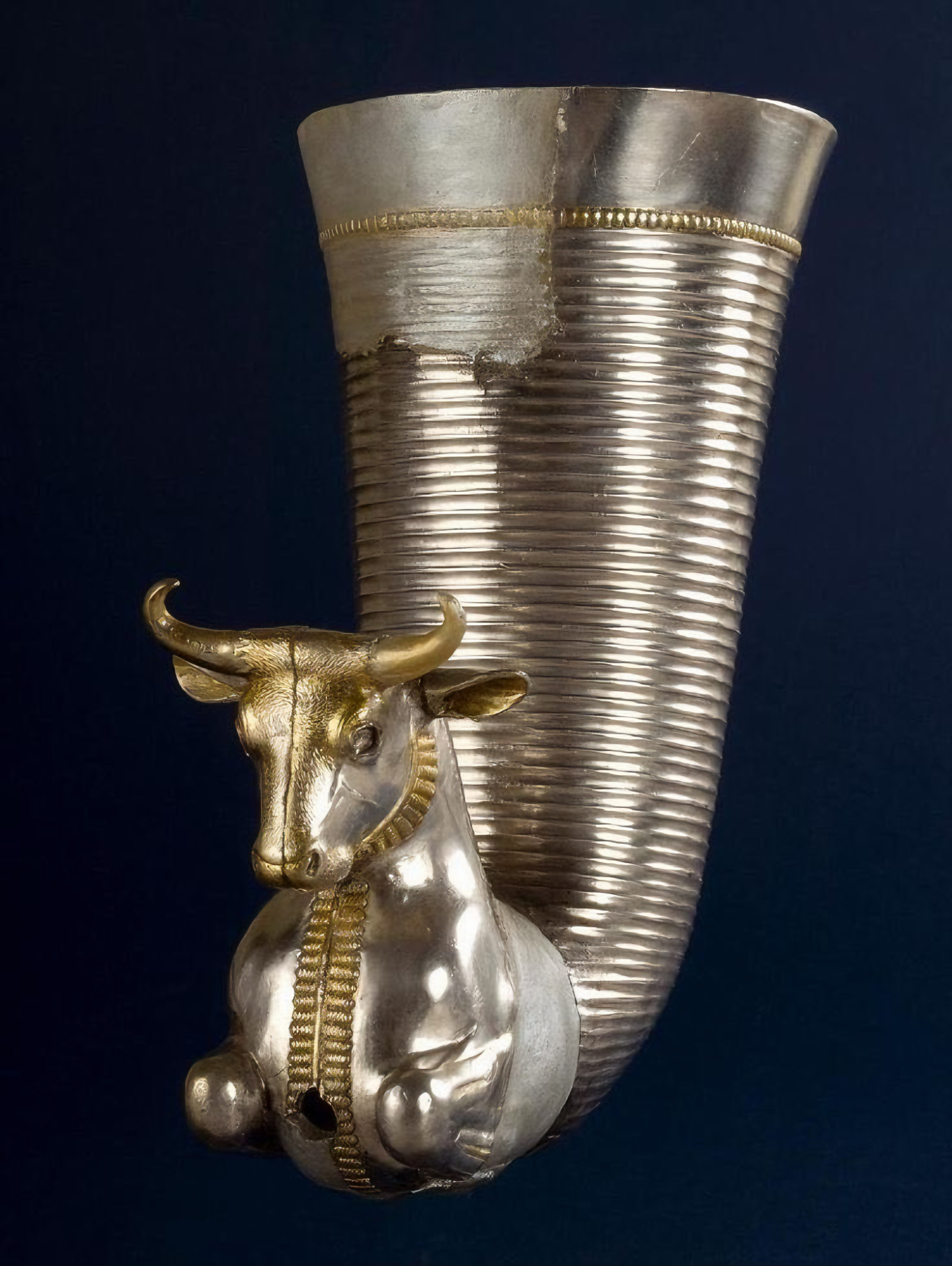 Photo 1: A silver-gilt bull rhyton, 4th century BCE, discovered in Borovo, Bulgaria.