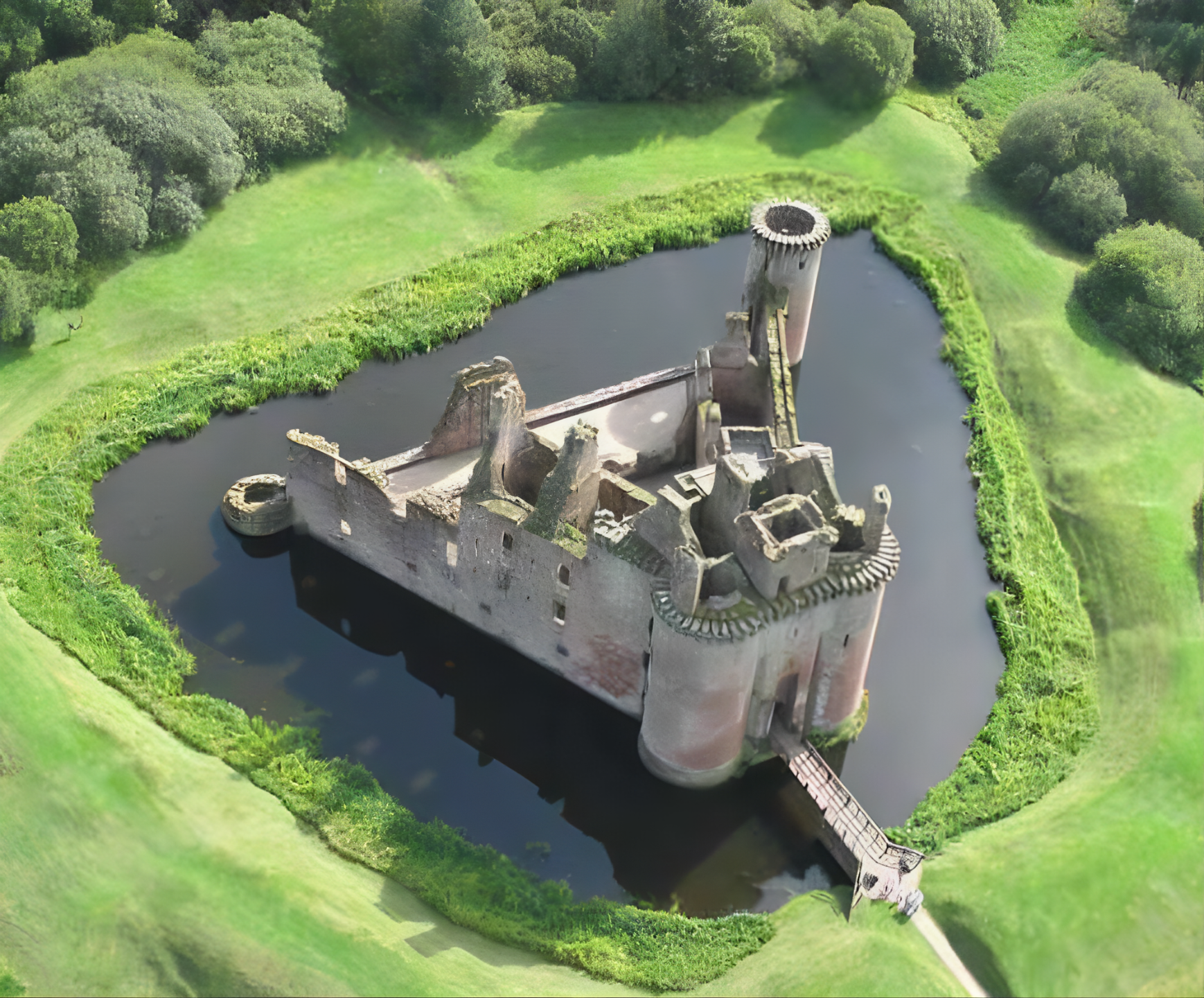 스코틀랜드 덤프리스 앤 갤러웨이Dumfries and Galloway에 위치한 케어러버록 성 Caerlaverock Castle은 13세기에 지은 독특한 삼각형 모양 중세 요새다.