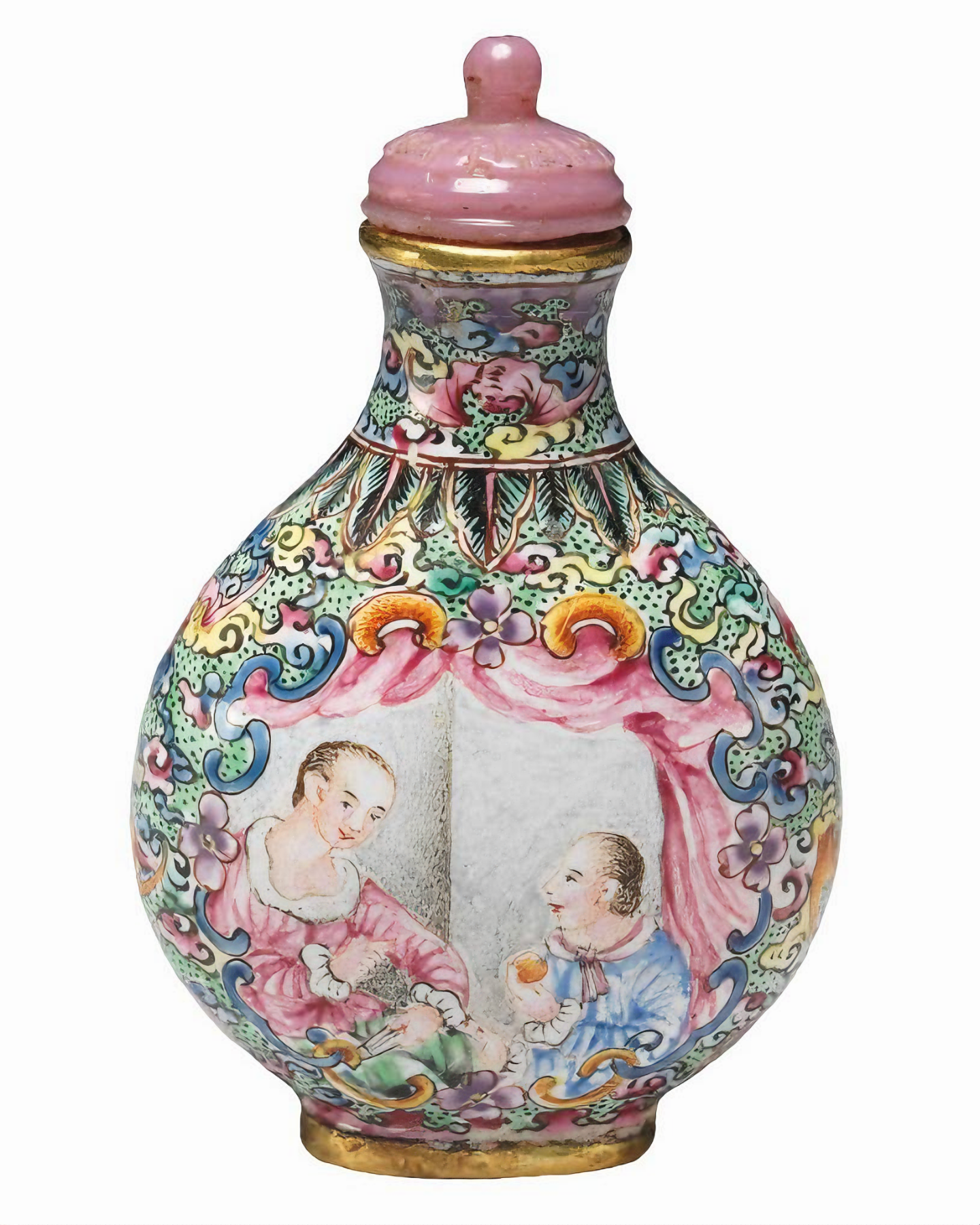 건륭제Qianlong Emperor(재위 1736~1795)는 주제와 예술적 양식 모두에서 서양 인물 장식 이미지를 선호했다.