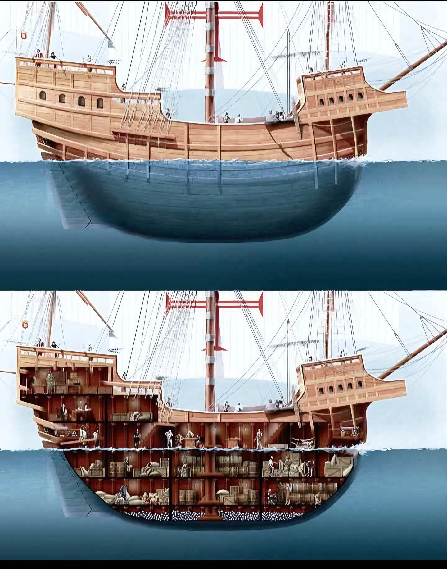 1497년 포르투갈 탐험가 바스쿠 다 가마가 인도로 첫 항해를 떠날 때 사용한 해군 기함 상 가브리엘Sao Gabriel 내부 모습이 저랬을 것이라 한다.