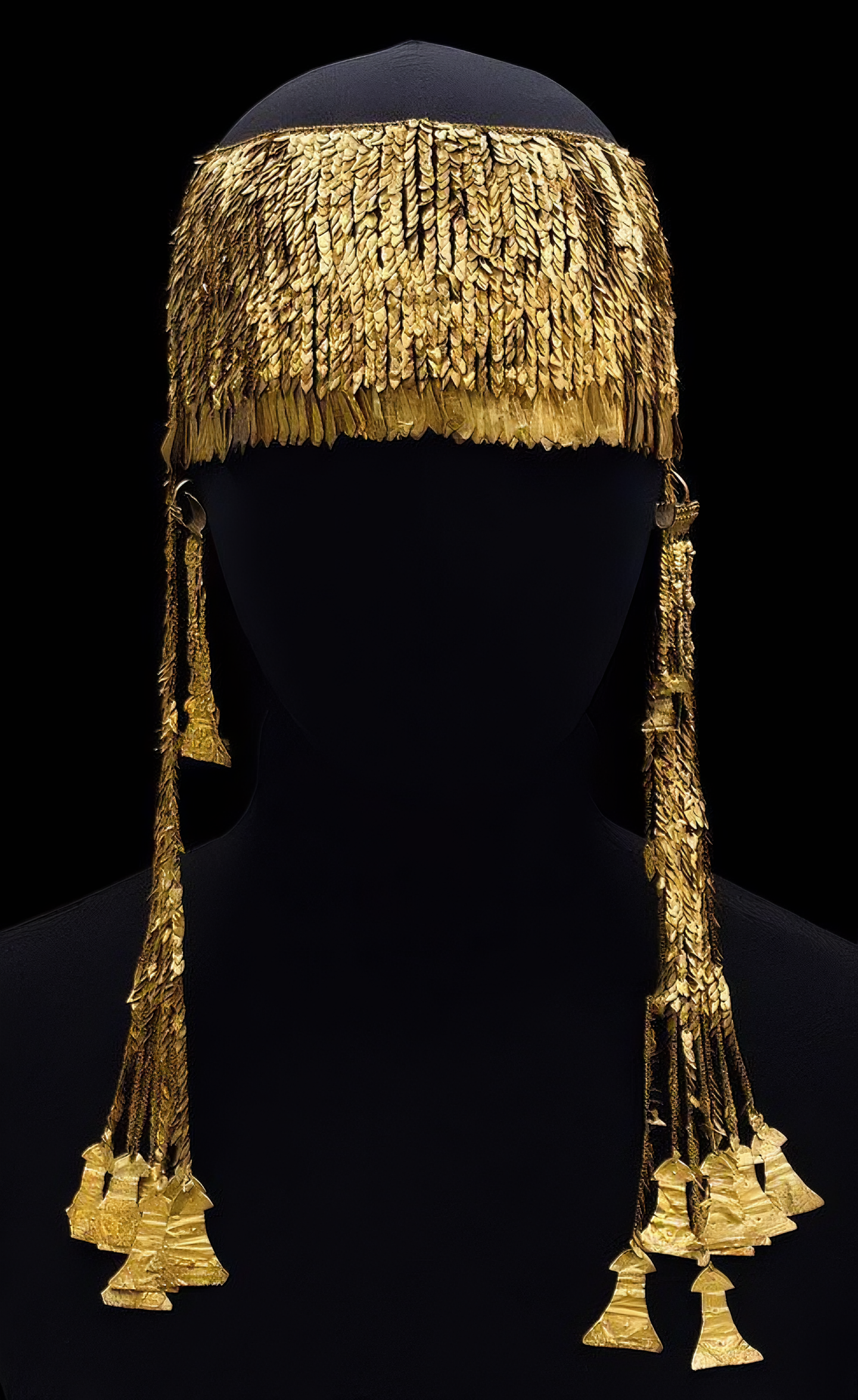 우상 모양 펜던트가 달린 이 큰 금관[Large Gold Diadem with Idol-Shaped Pendants]은 1870년대 트로이Troy 유적 발굴 중 독일 고고학자 하인리히 슐리만Heinrich Schliemann이 찾았다.