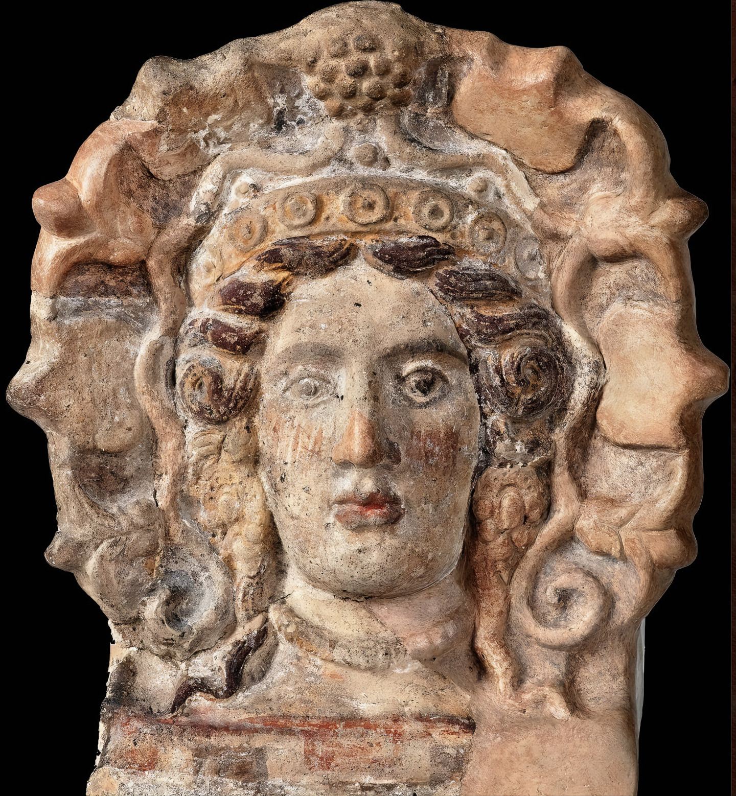에트루리아 테라코타 여성 조각 봉헌 두상이다.
