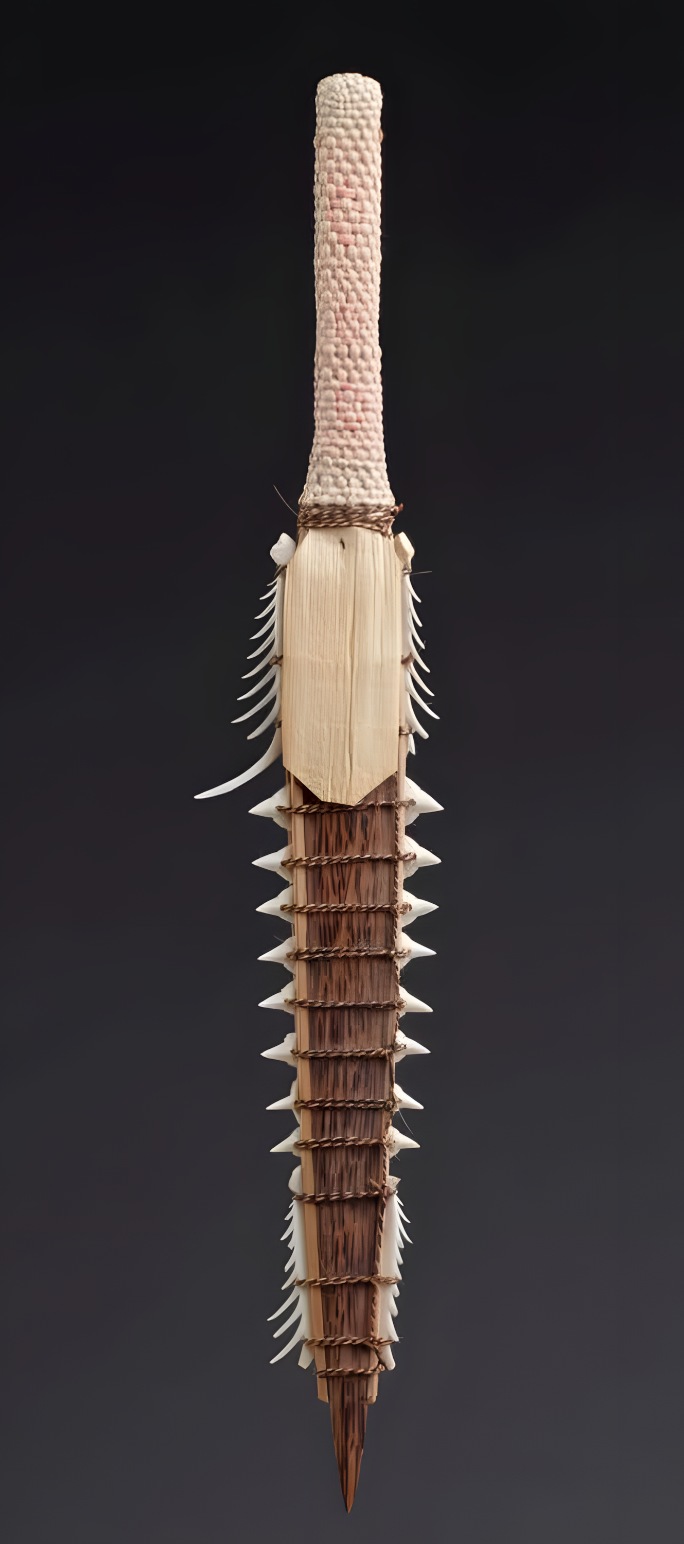 19세기 나무, 상어 이빨, 식물 섬유로 만든 무기로, 전투에 사용했으며 상징적인 의미 때문에 높은 가치를 지녔다.
