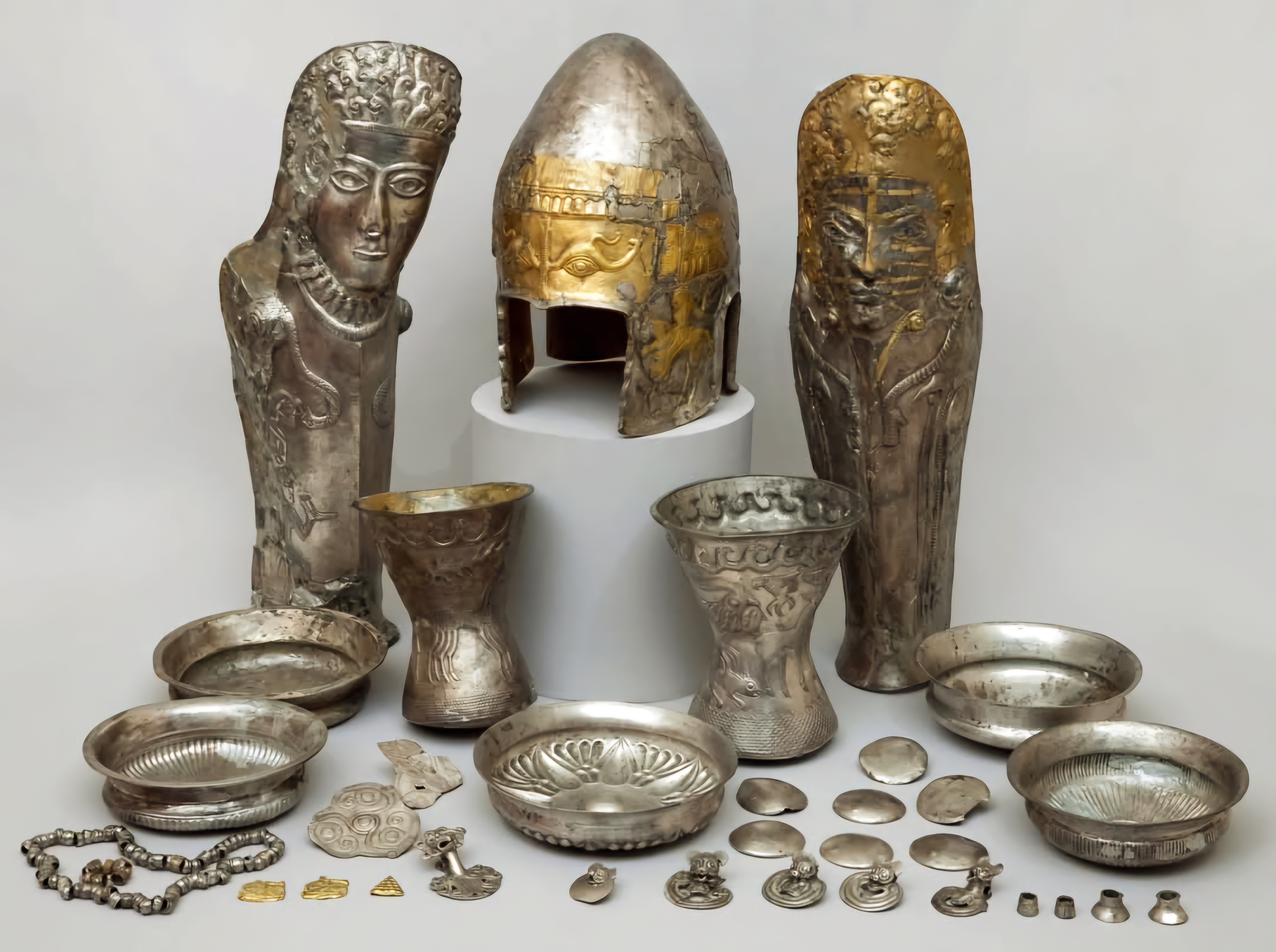 2500년이 지난 이 게타이 다키아Geto Dacian의 은과 금 보물은 다뉴브 강 어귀 근처 루마니아 흑해 연안 아기히올Agighiol 매장지에서 발견되었다.