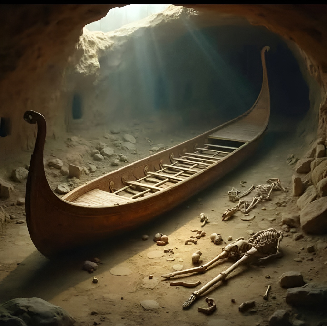이 배는 복잡하게 조각된 나무 썰매, 직물, 상자, 도구를 포함한 풍부한 껴묻거리를 담은 매장 용기 burial vessel 역할을 했으며, 당시의 예술적이고 실용적인 업적을 보여주었다.