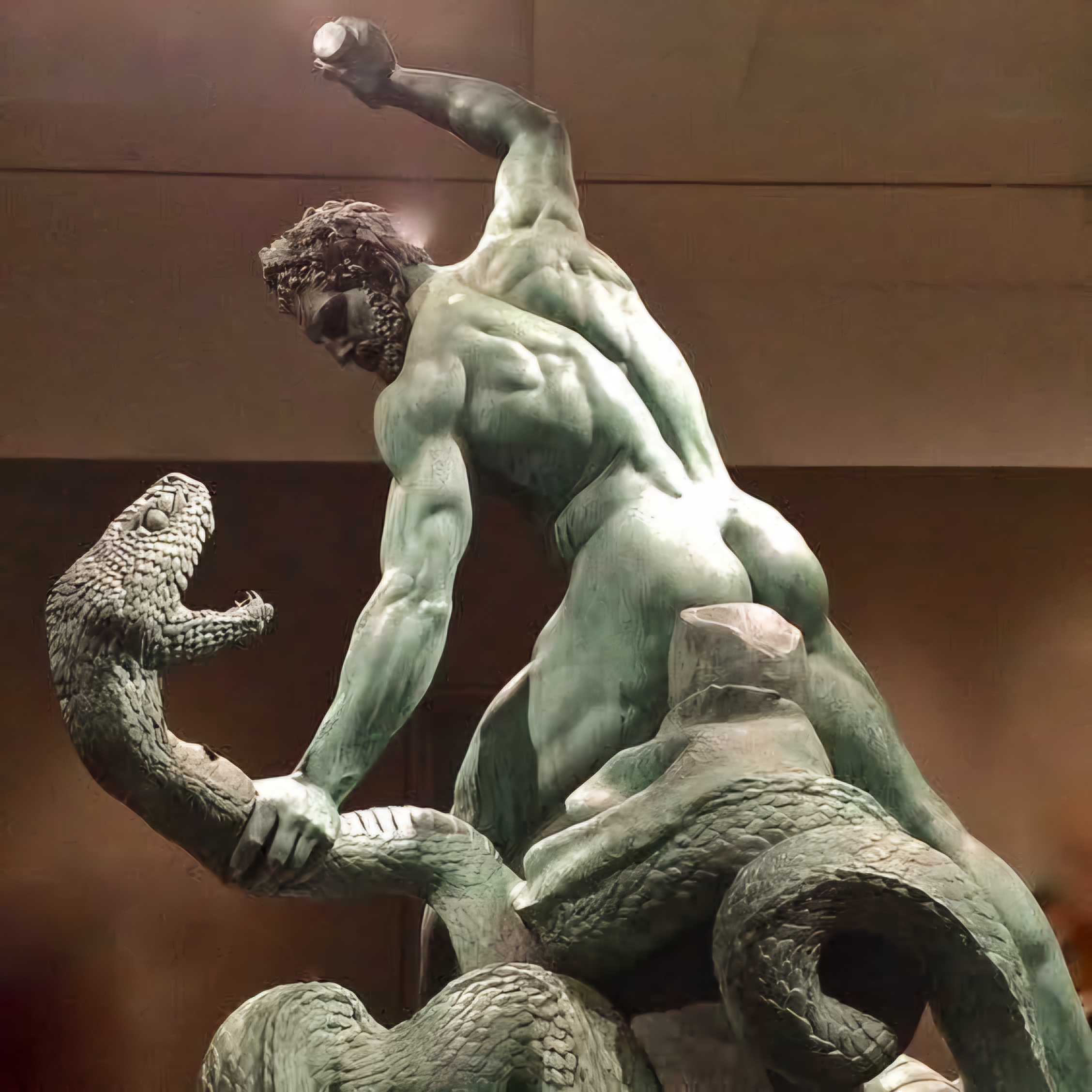 저 조각은 뱀으로 변한 아켈로스는 목을 조르는 장면을 형상화했다.