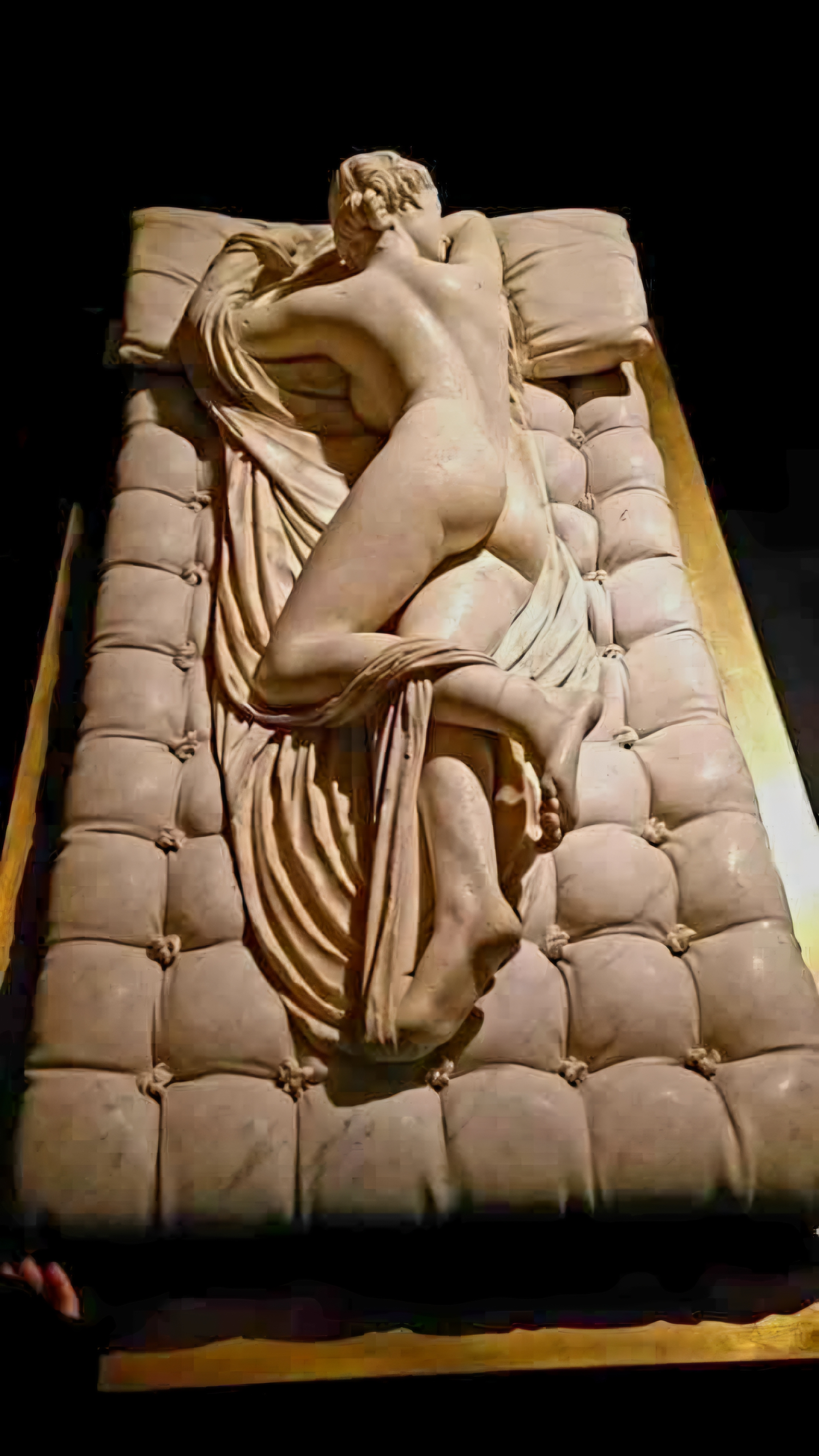 잠자는 헤르마프로디투스Hermaphroditus는 헤르메스Hermes와 아프로디테Aphrodite의 아들인 헤르마프로디투스의 실물 크기의 인물을 묘사한다.