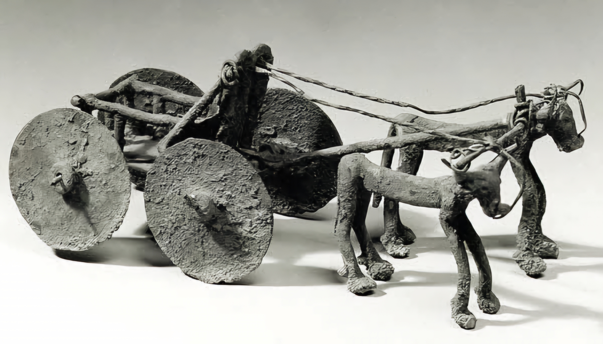 최소 4,000년은 된 이 구리 모형은 황소가 끄는 마차를 묘사한다.