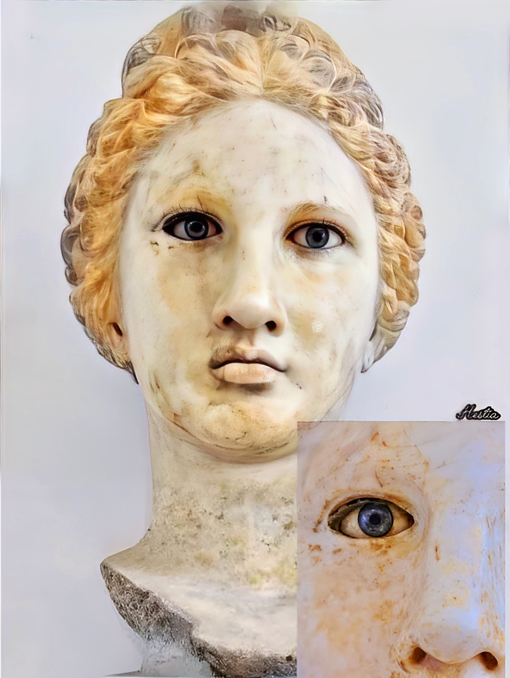 푸른 디테일로 정면을 응시하는 이 눈은 실물 조각 느낌을 주기도 한다.