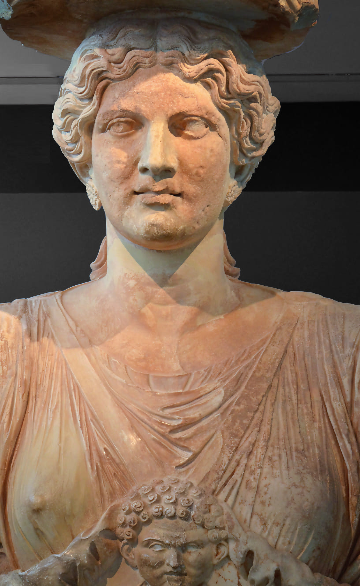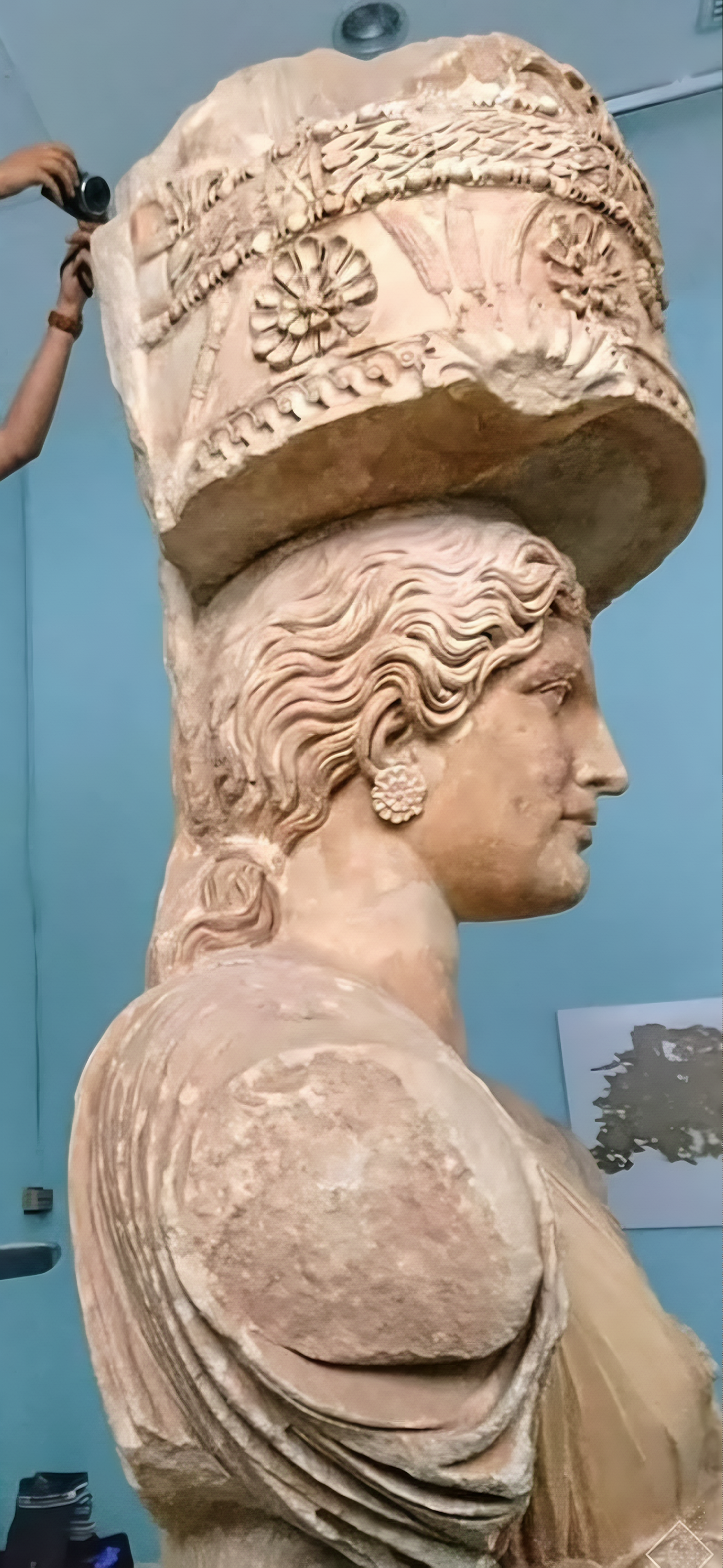 엘레우시스 데메테르Demeter 신전으로 들어가기 전에 아래쪽 프로필레아Propylaea 지붕을 지탱하는 두 개 카리아티드caryatid 중 하나였다.