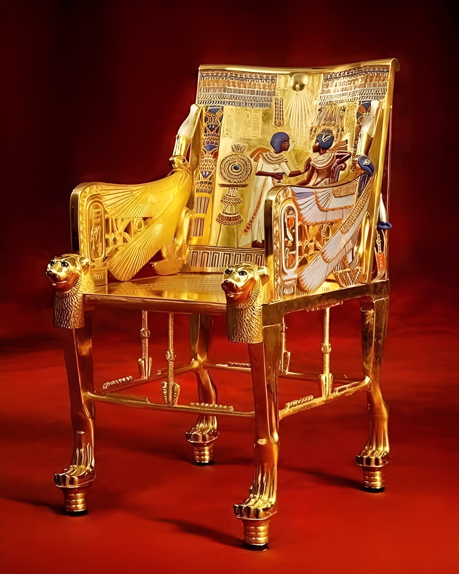 그의 묘실에서 발견된 유물 5천398점 중 왕좌는 걸작으로 우뚝 선다.