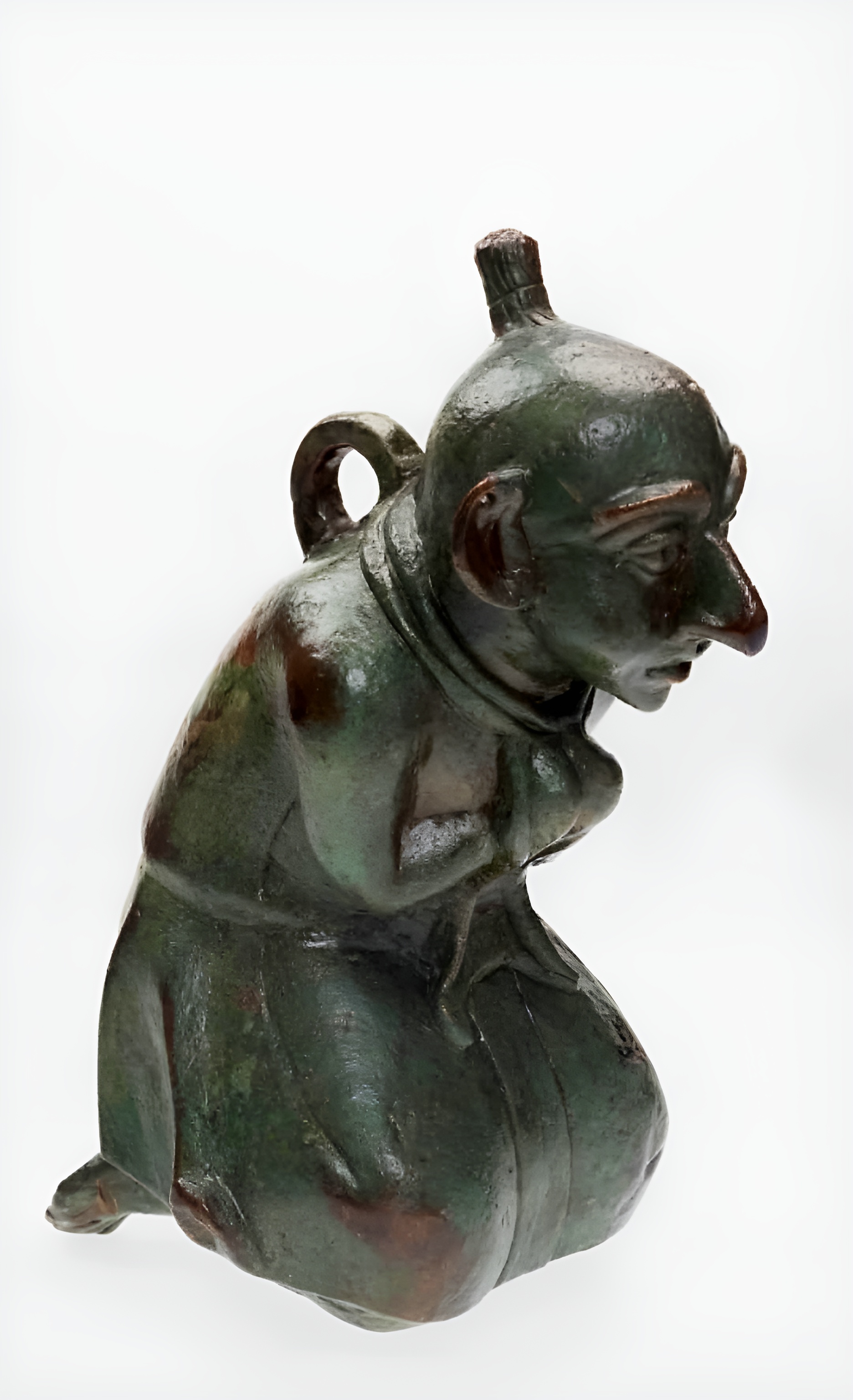 이 동상은 짧은 망토를 입고 몸을 앞으로 숙인 채 무릎을 꿇은 남자를 묘사한다.
