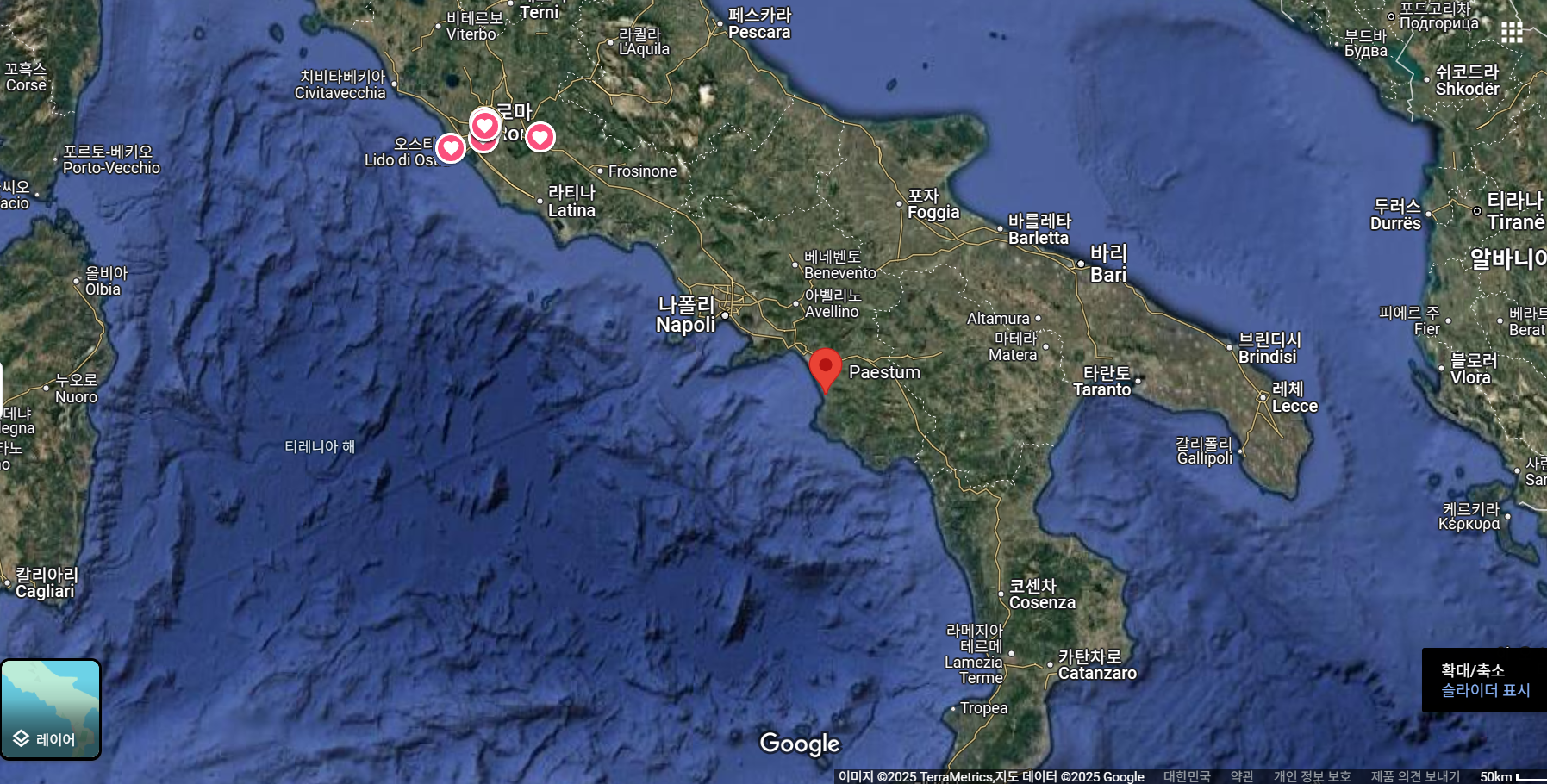파에스툼은 나폴리 남쪽에 위치하는 해변 도시로, 이 지리 특성을 감안해야 할 듯하다.