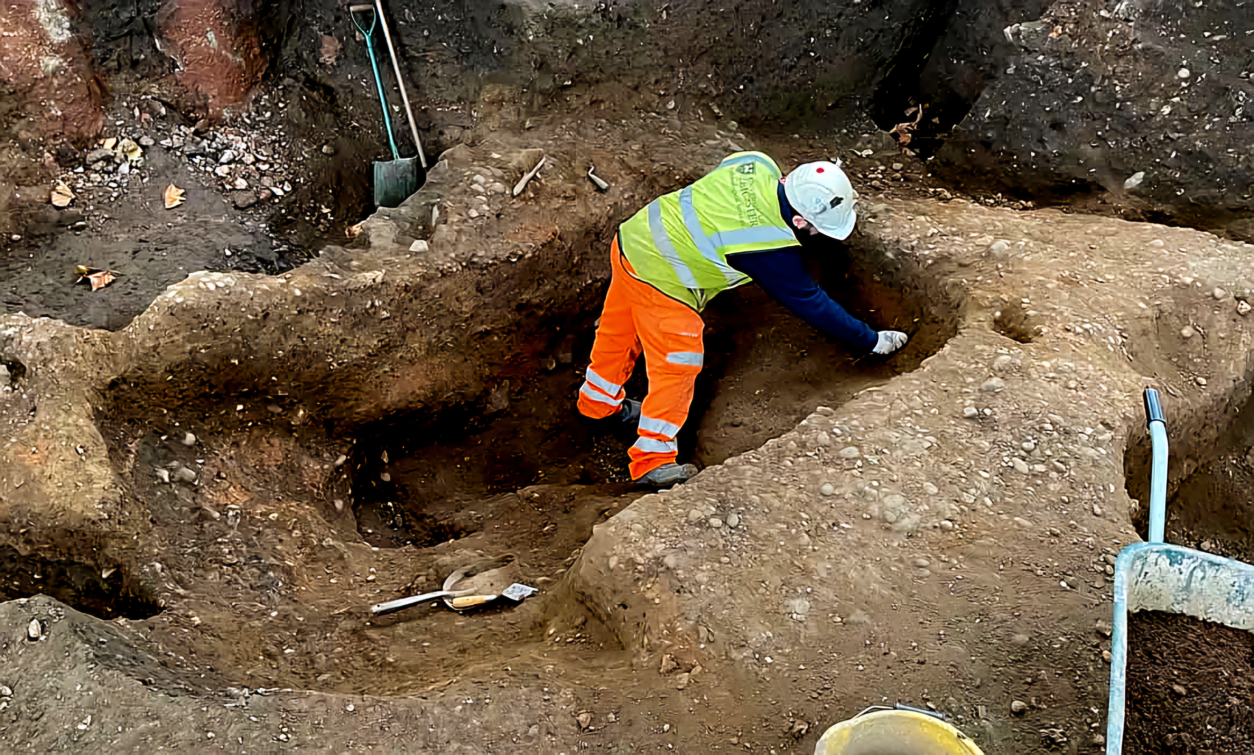 레스터 대학교 고고학 서비스(Leicester University Archaeological Services)의 매튜 모리스(Matthew Morris)는 구덩이가 3개 층위 빠른 퇴적물로 채워졌고 연속적으로 수레에 실린 시체가 현장으로 옮겨졌다고 설명했다.