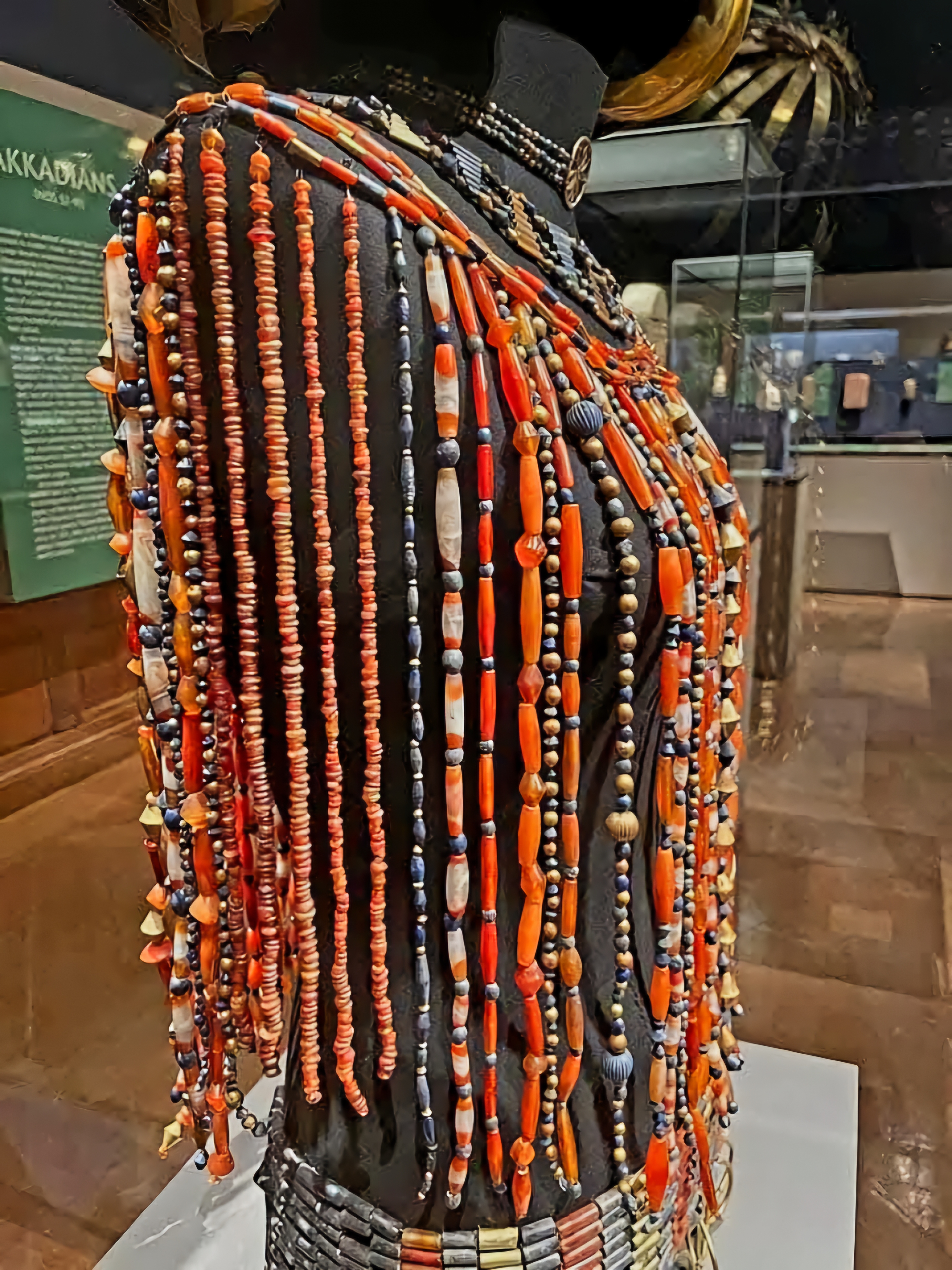 카르넬리안carnelian, 라피스lapis, 금, 마노agate로 만든 수의는 오늘날 이라크에 있는 우르Ur 시에서 발견되었다.