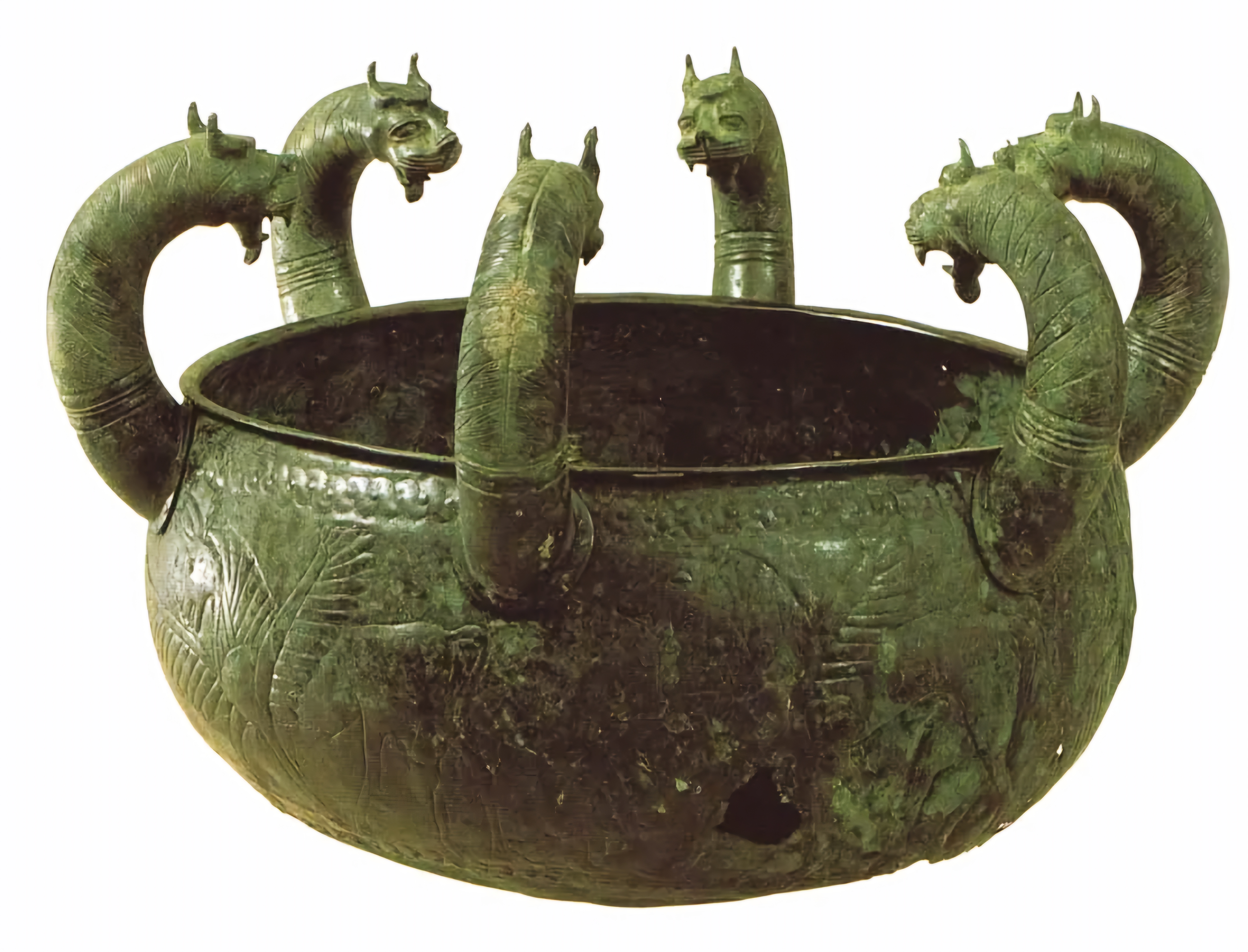 로마에서 북북서쪽으로 약 50~60km 떨어진 카이레Caere(현재의 체르베테리Cerveteri)에 있는 레골리니갈라시Regolini-Galassi 무덤에서 발견된 그리핀 원형griffin protomes 갖춤 청동 가마솥Bronze cauldron.