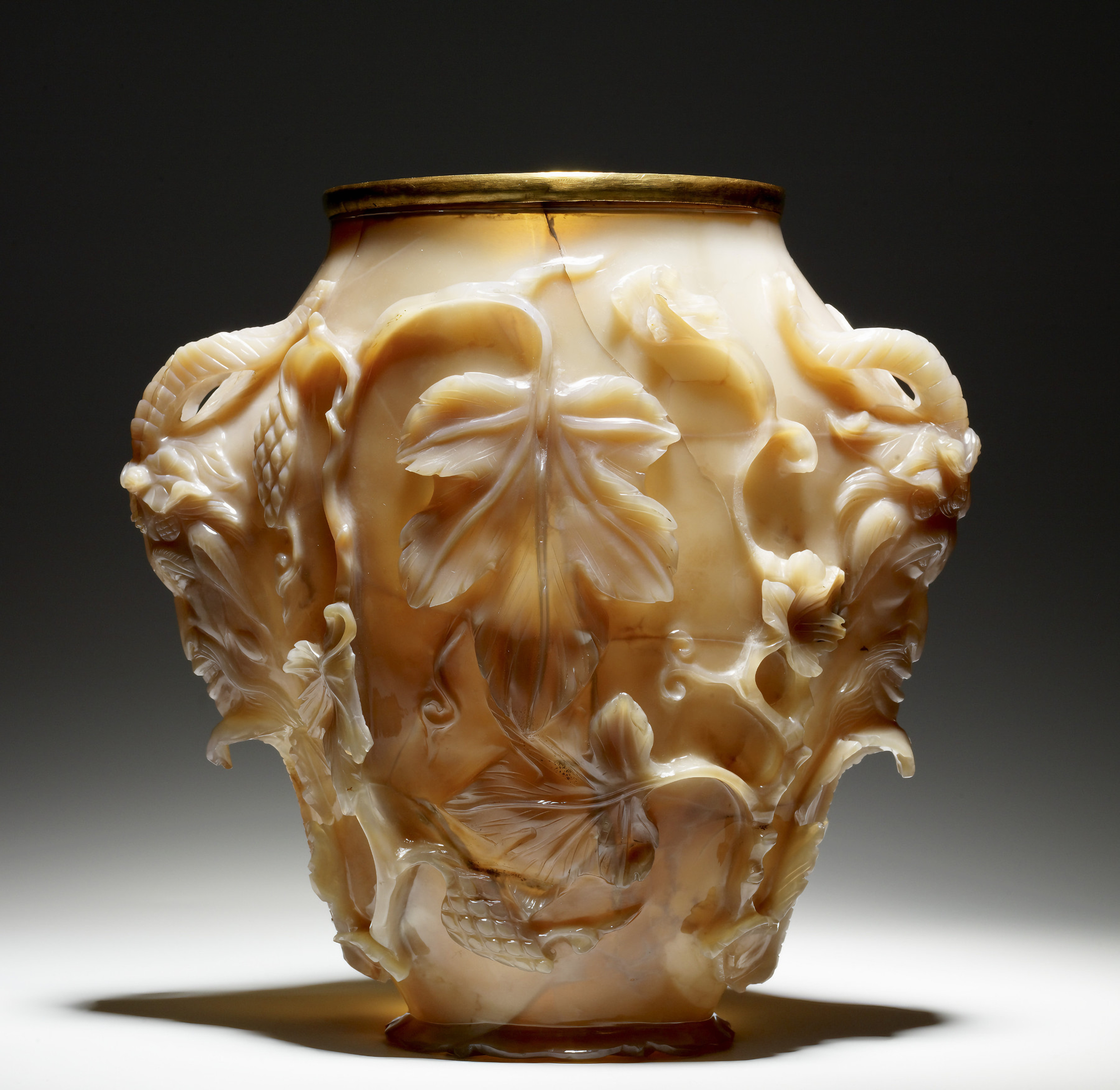 마노 한 조각을 높은 부조로 조각한 이 특별한 병은 비잔틴 황제를 위한 황실 작업장에서 제작되었을 가능성이 높다.