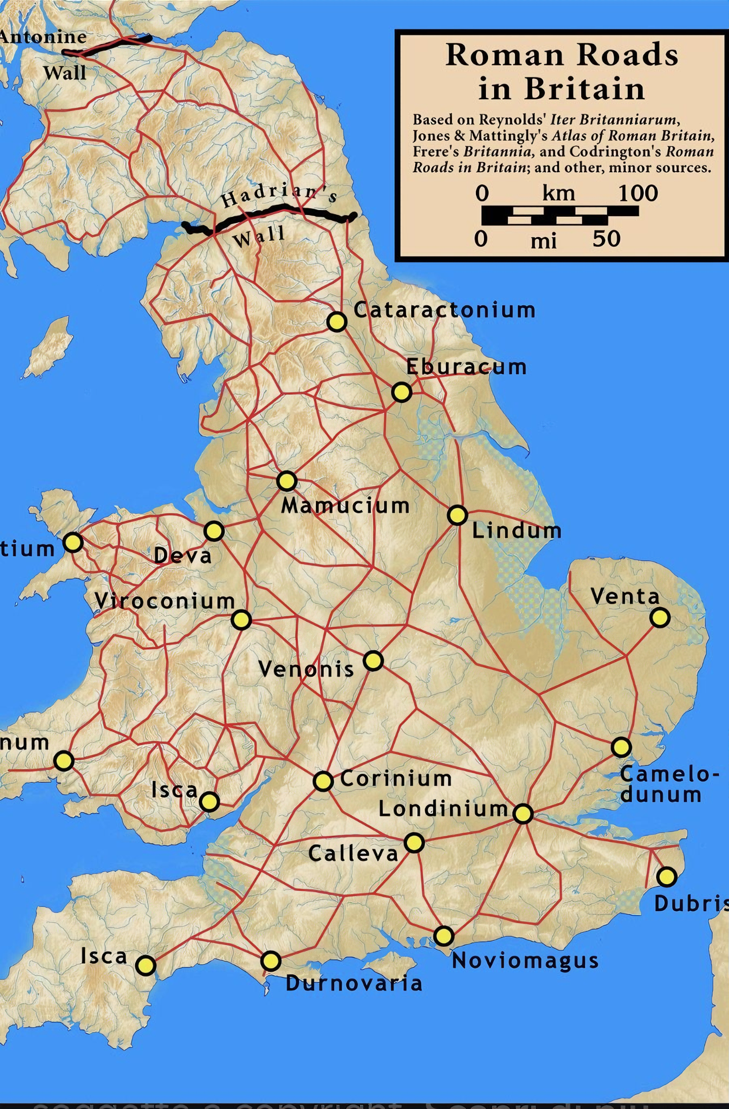 2천년 로마가 카이사르에 의한 정벌 이래 지금의 그레이트 브리튼에 그물망처럼 구축한 도로망이다.