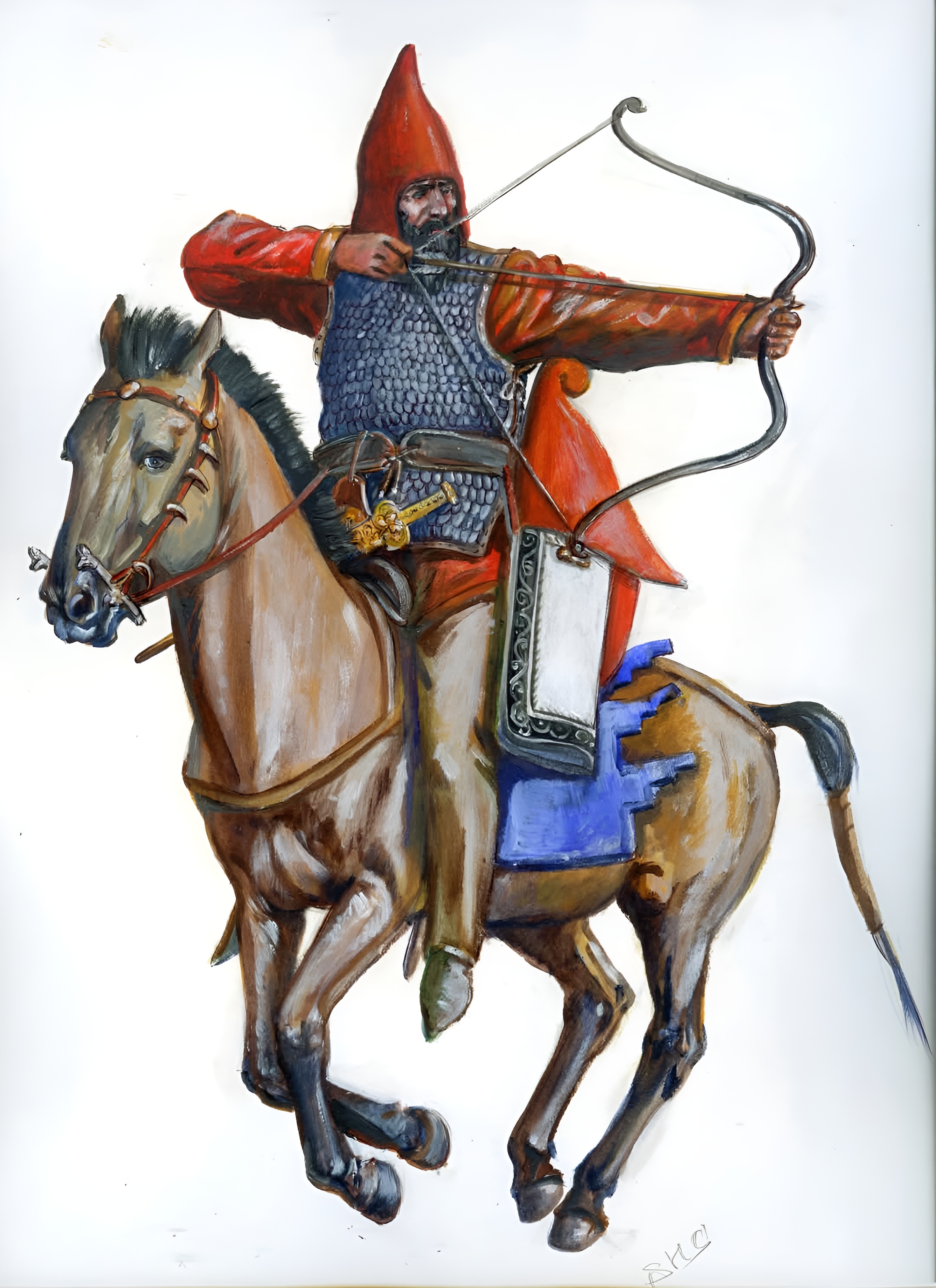 저 사진은 고고학 발굴에 기초한 기원전 6세기 무렵 스키타이 전사 모습 복원안이라 한다.