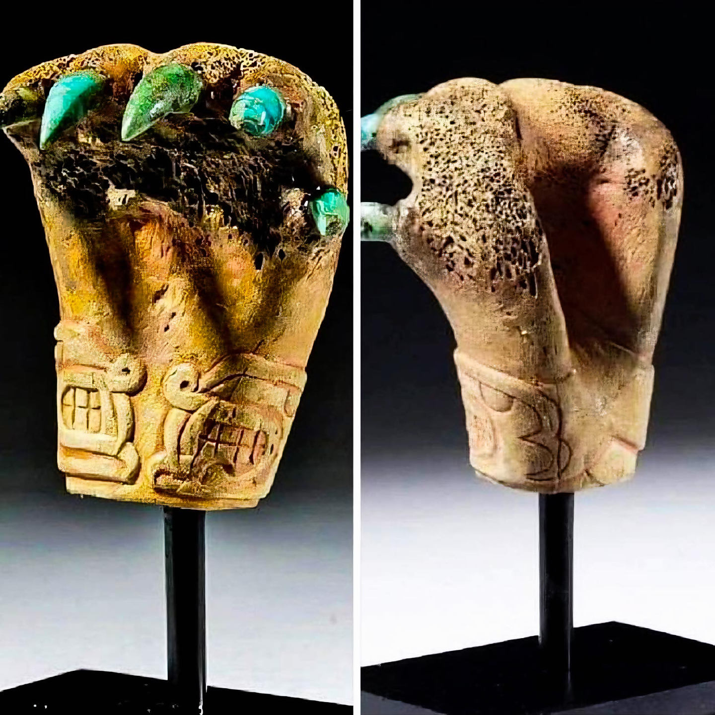 기원전 1200년부터 200년까지 거슬러 올라가는 페루 차빈Chavin 문화에 속한다. 더 특이하게도 터키석turquoise을 박았다.
