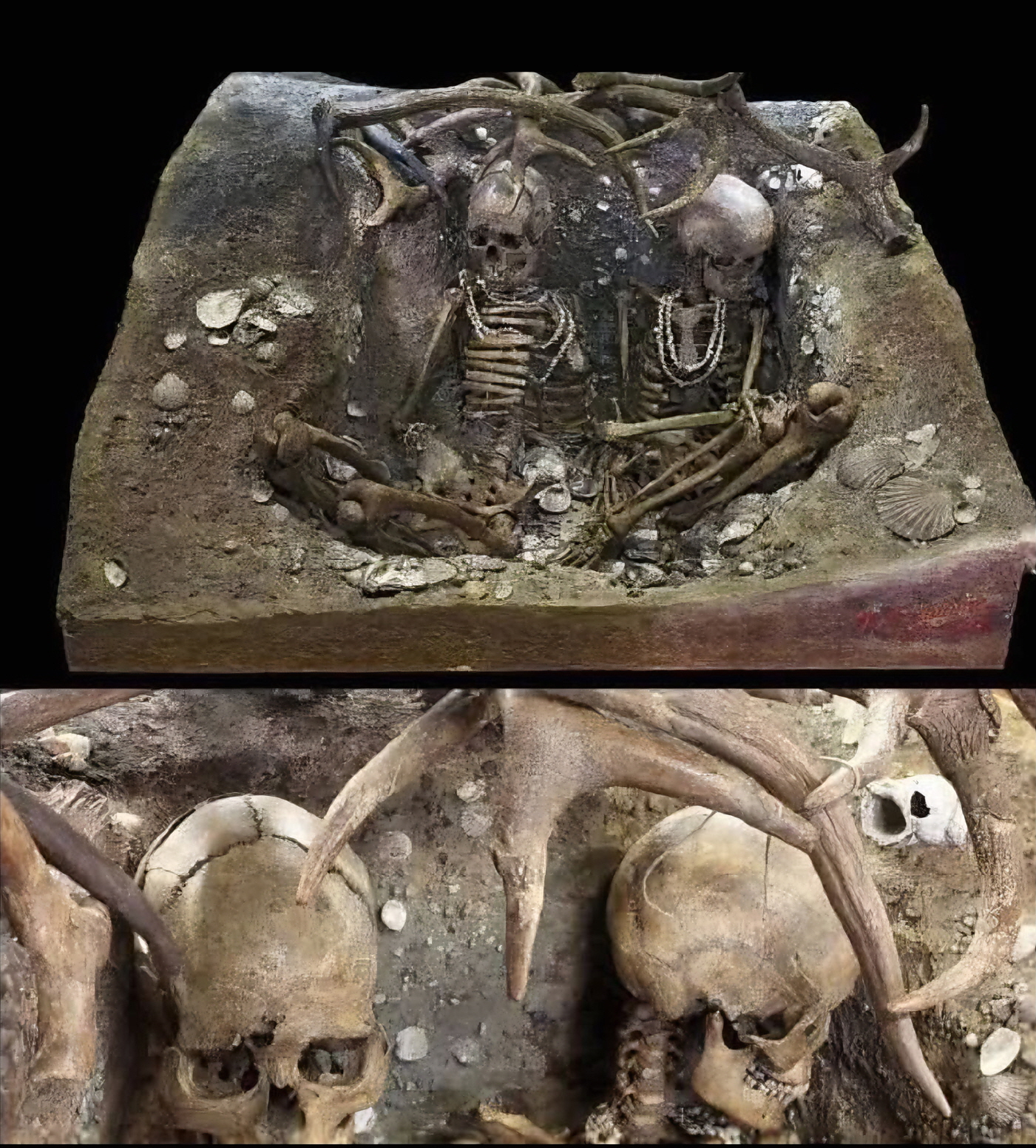 프랑스 테비에크Téviec에서 발굴된 두 여성 무덤과 그 인골.