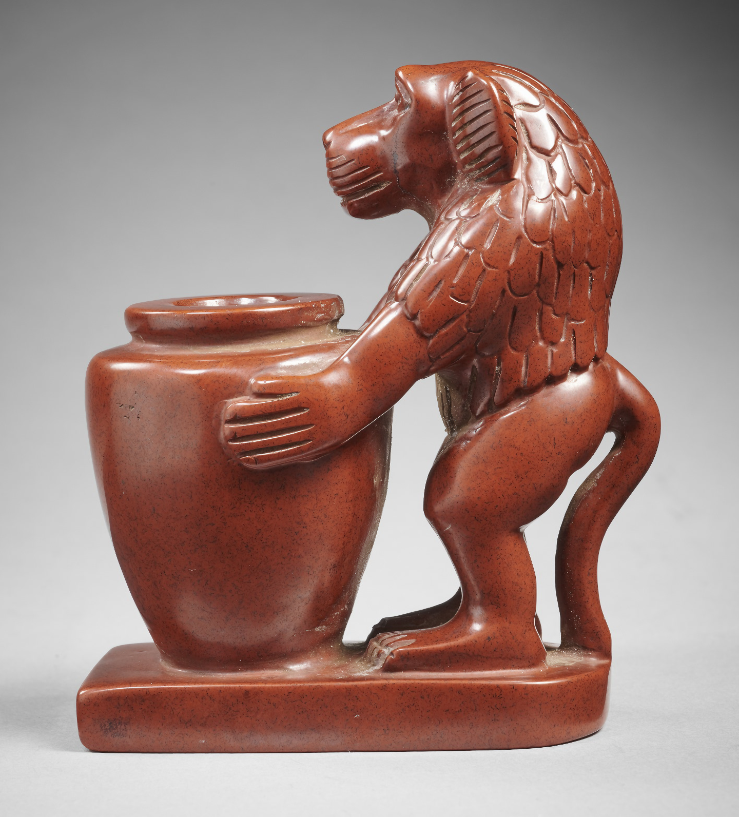 An ointment jar with a figure of a baboon, one manifestation of the god Thoth.