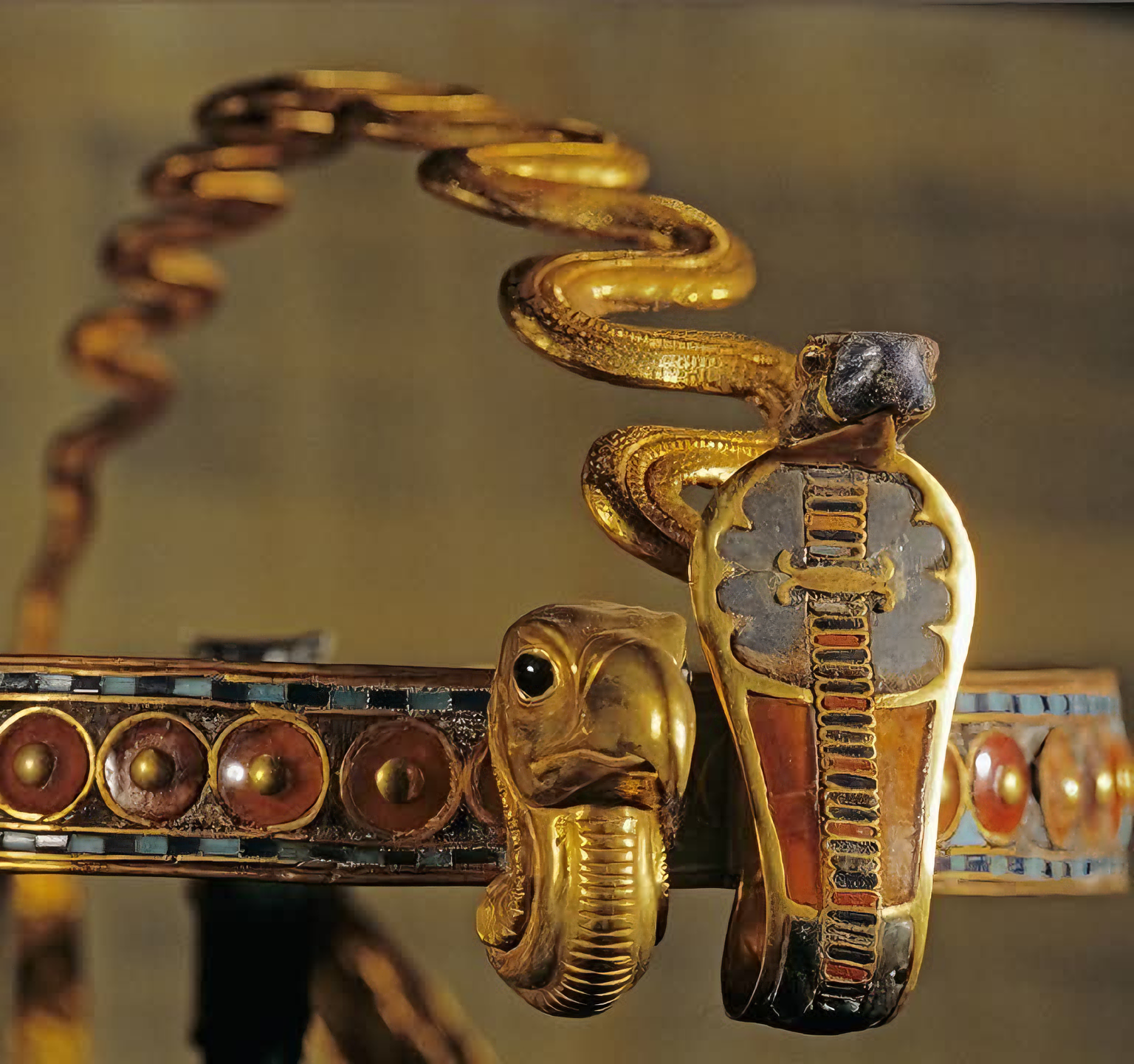 흑요석 눈 obsidian eyes이 박힌 독수리 여신 vulture goddess 네크베트Nekhbet와 준보석emiprecious stones과 유리가 박힌 코브라 여신 cobra goddess 와제트Wadjet다.