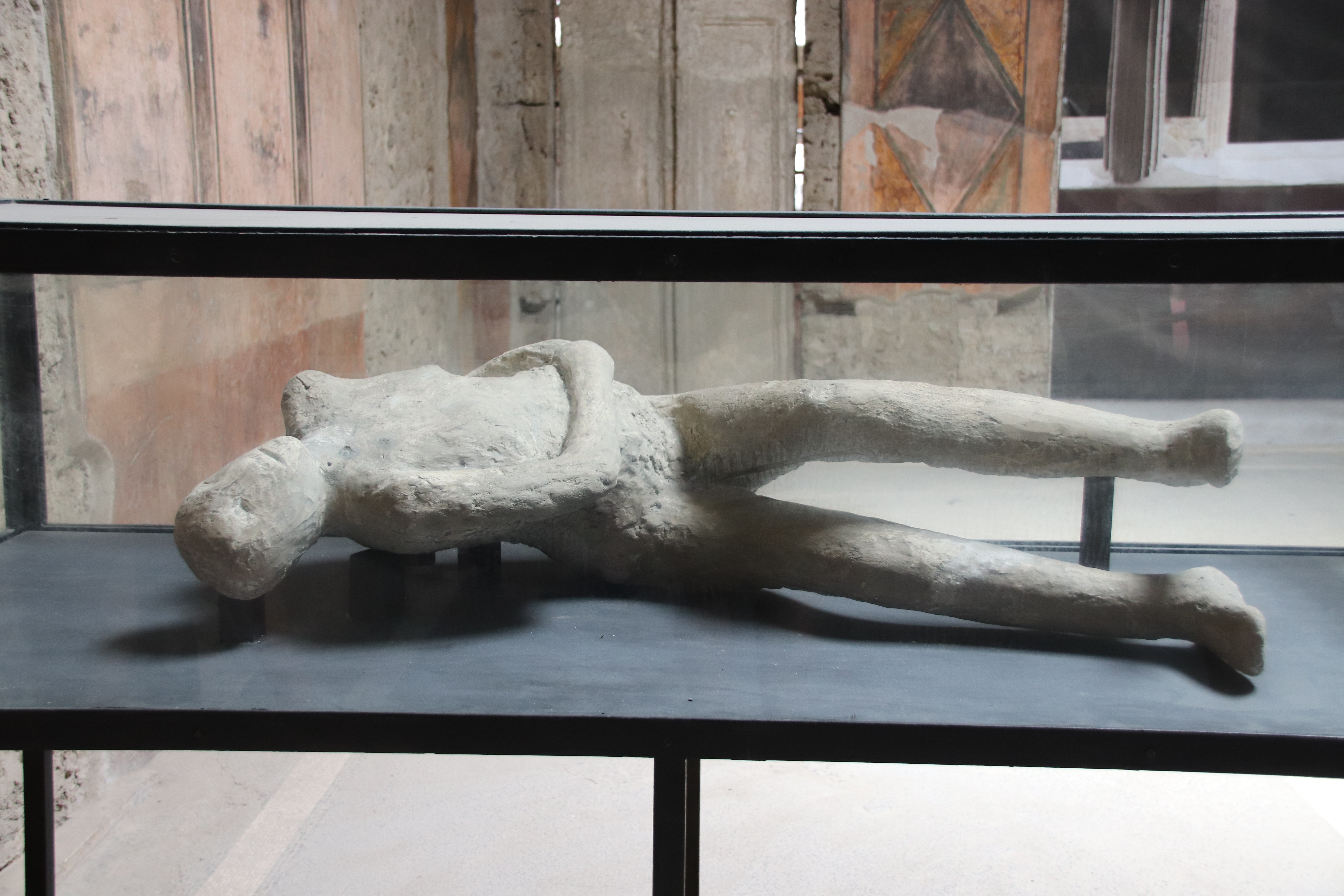 여섯 구 시체(입구 근처에 소녀 한 명과 성인 여성 한 명, 지하에 네 명)가 나중에 더 높은 화산쇄설물 분출층pyroclastic eruption layers에서 발견되었는데, 이는 그들이 재앙의 첫 번째 국면을 살아남았음을 의미한다.