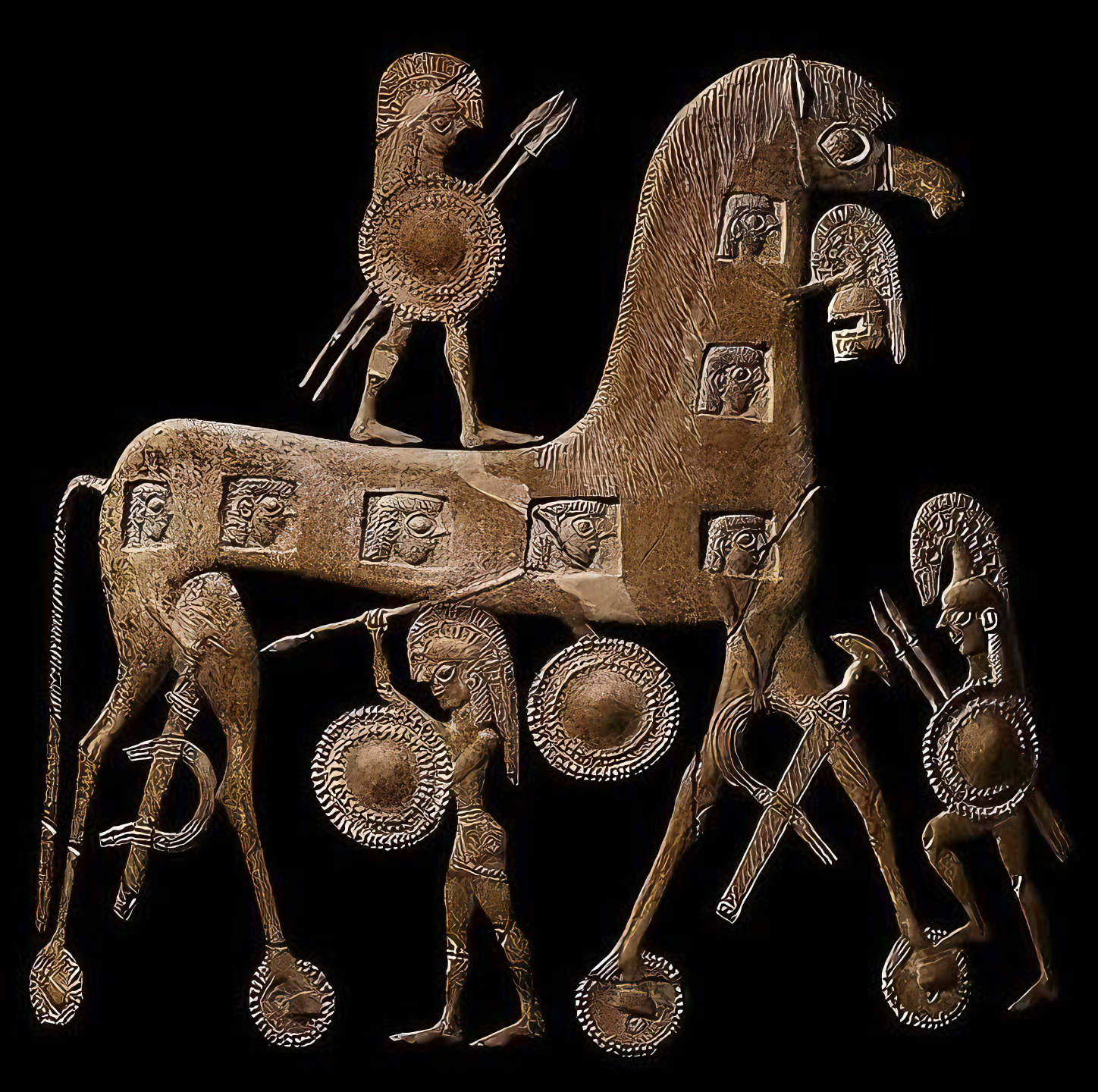 저 도안은 딱 봐도 쌈박질하는 전사들이 거대한 말 몸통에 몸을 숨기고 전진하는 장면이다.