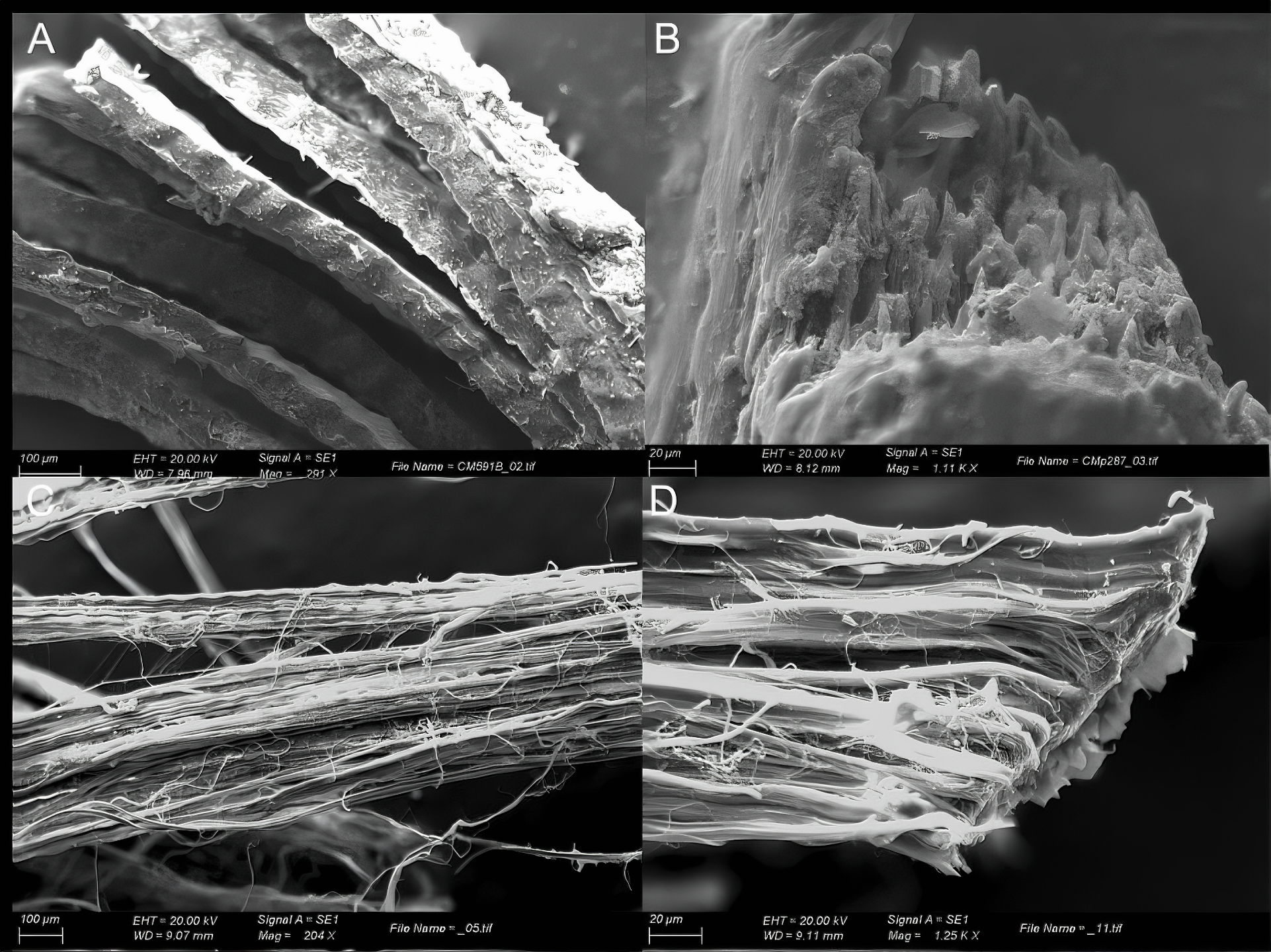 분석 결과 염소, 멧돼지, 노루 힘줄은 충분한 길이가 될 때까지 꼬아 만든 것으로 드러났다.