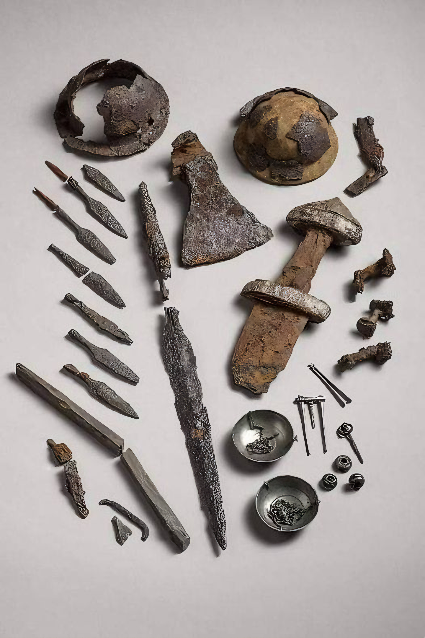 📷 : Bowls, swords, pearls – all are traces of a trading post in the Viking Age. The three balls in the lower left corner are silver buttons, which the archaeologists believe come from the British Isles. (📷© Åge Hojem)