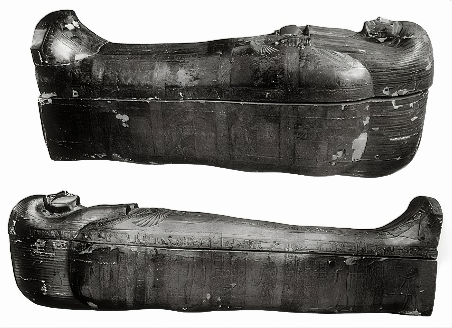 금박으로 덮었고, 복잡한 조각과 그의 높은 지위와 사후 세계로의 영적 여정을 반영하는 신성한 상징이 있다.