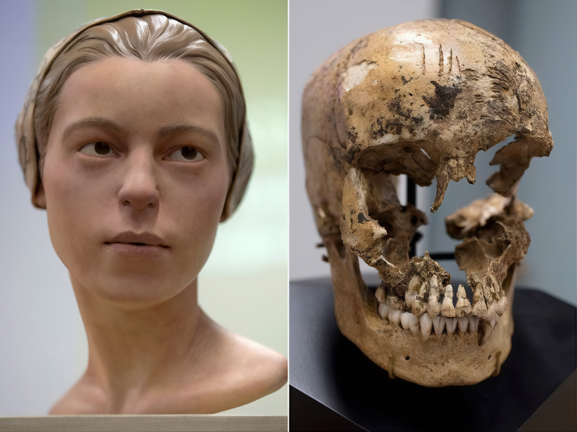 왼쪽에는 두개골 분석을 기반으로 삼은 복원안이다.