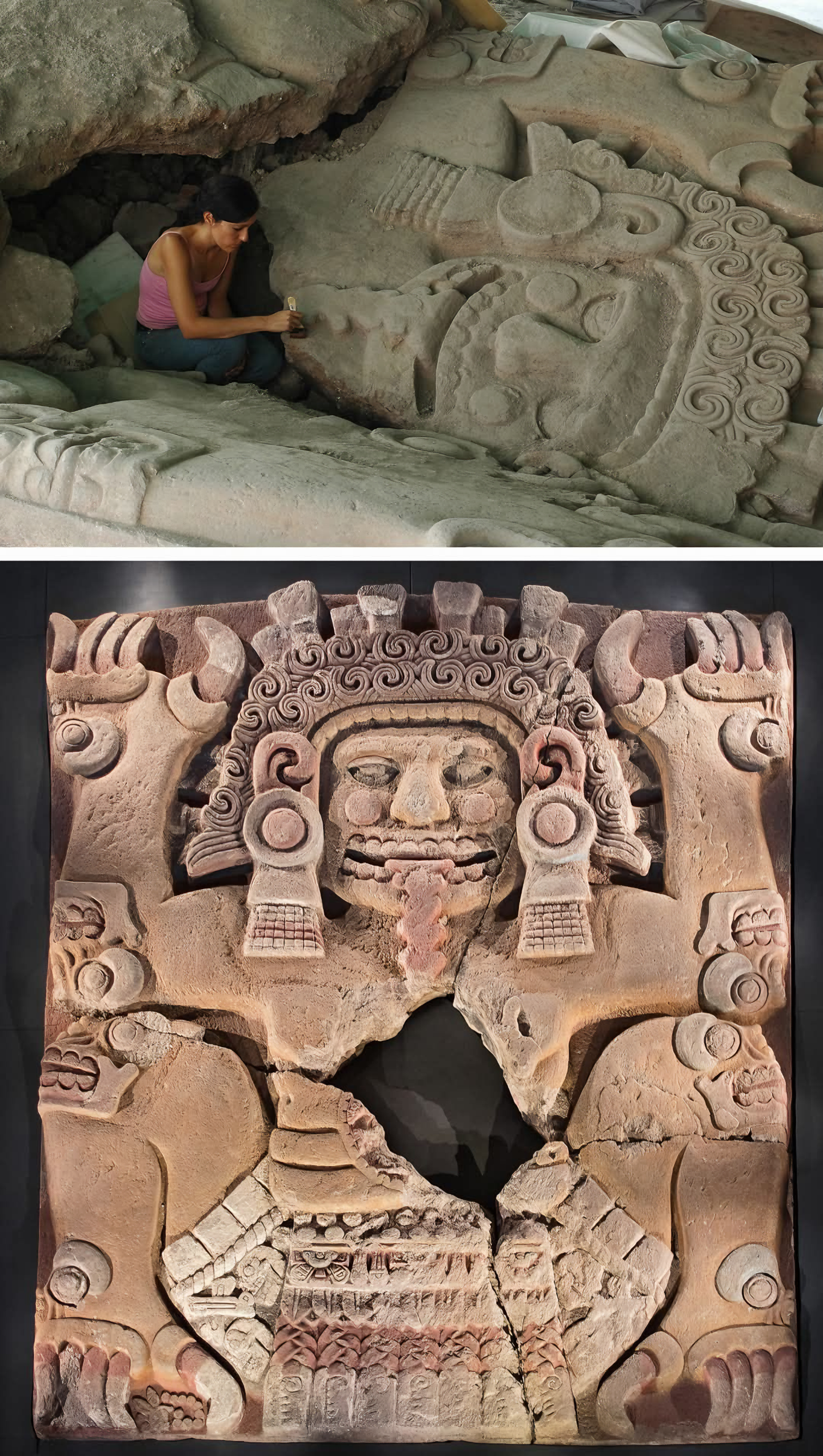 A massive monolith of the earth goddess Tlaltecuhtli was discovered in an excavation at the Templo Mayor in Mexico City.