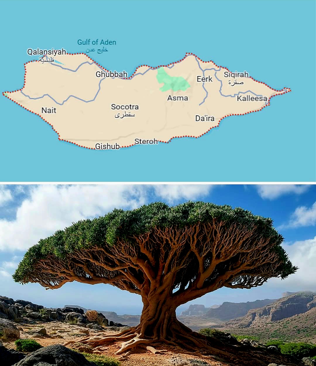 소코트라Socotra는 이가 속한 예멘 해안에서 약 380km 떨어진 아라비아해에 위치한 외딴 섬이다. 독특한 생물 다양성과 초자연적인 풍경으로 유명한 유네스코 세계문화유산이다.