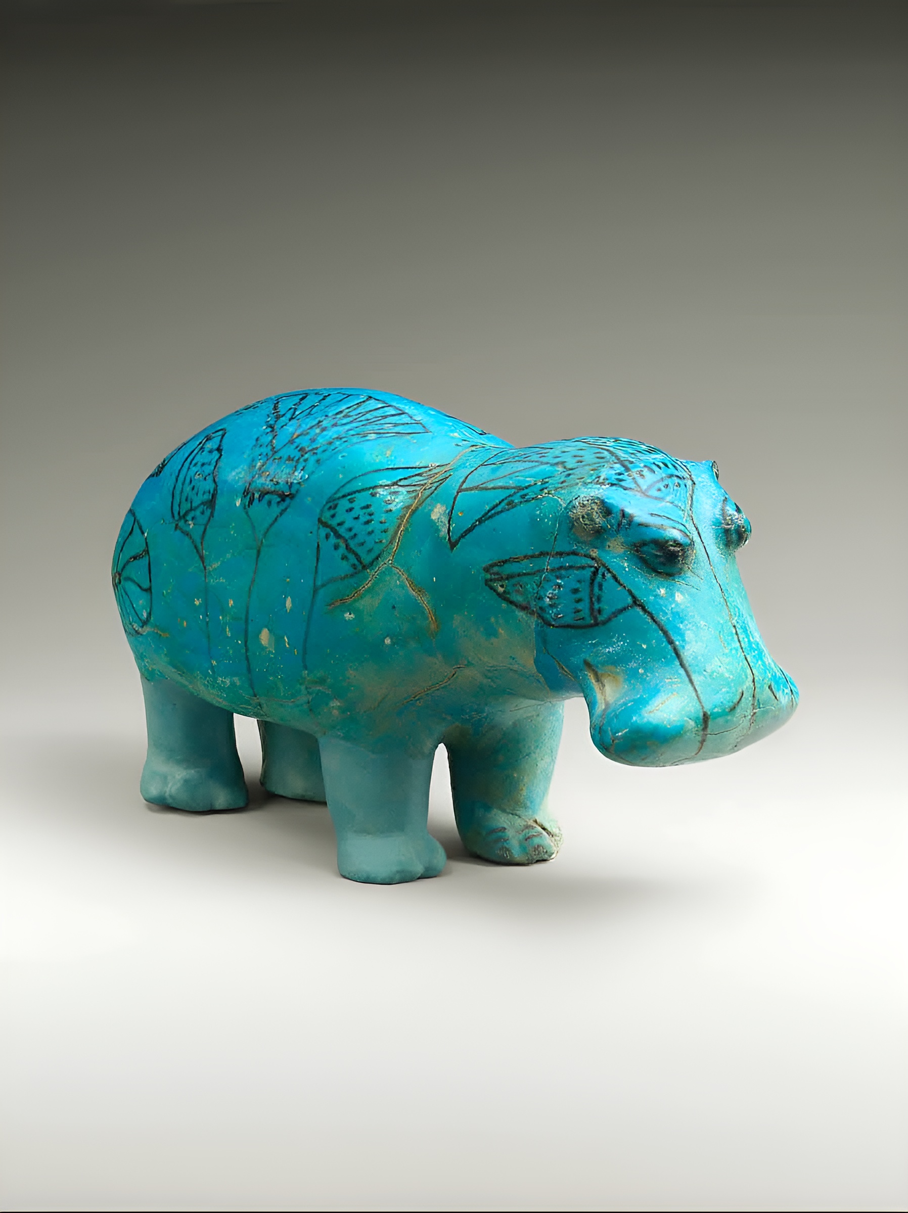 이 하마 조각상(일반적으로 "윌리엄"이라고 한다)은 석영ground quartz을 갈아 만든 세라믹 재료인 파이앙스faience로 성형했다.